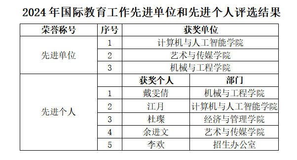 关于2024年国际教育工作先进单位及先进个人评选结果的公示
