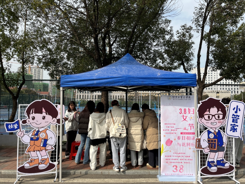 本网讯(通讯员:陶歆雅 夏任鸿 张瑞 王子怡)为了提高学生们对妇女节的重视,树立正面的女性形象,促进社会对女性的尊重和肯定。经济与管理学院于3月8日在一教门口操场组织了一场以“春日相逢,与花同行”为主题的妇女节特别活动。