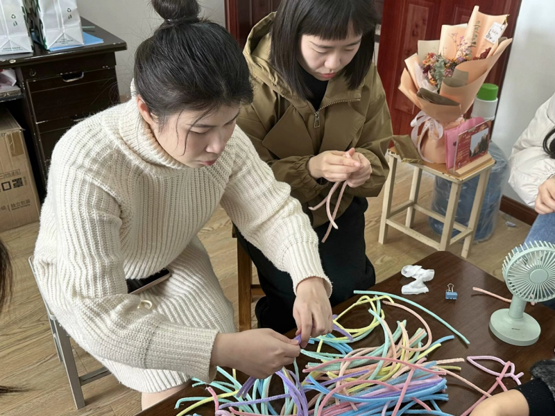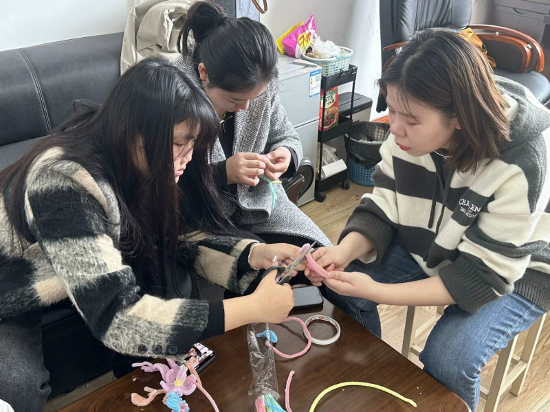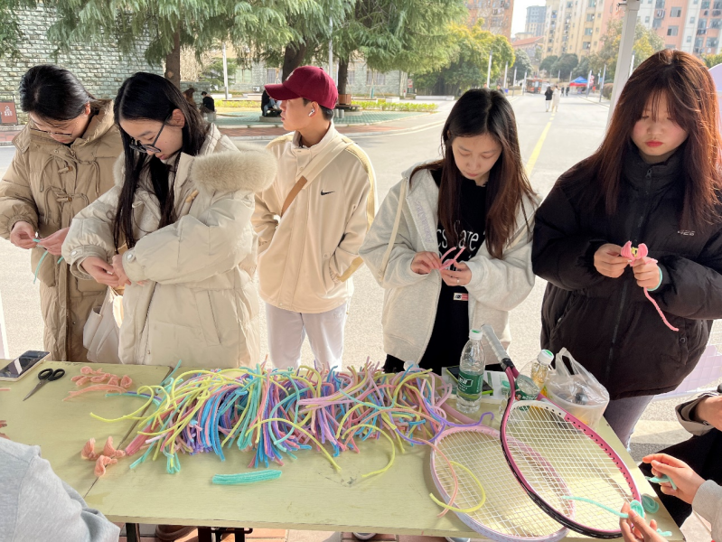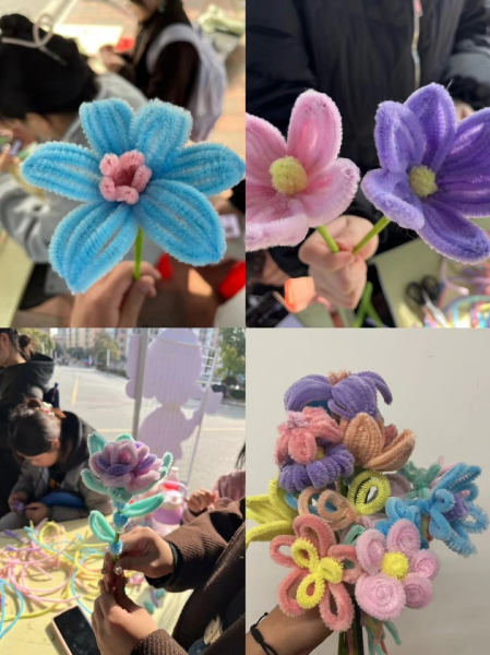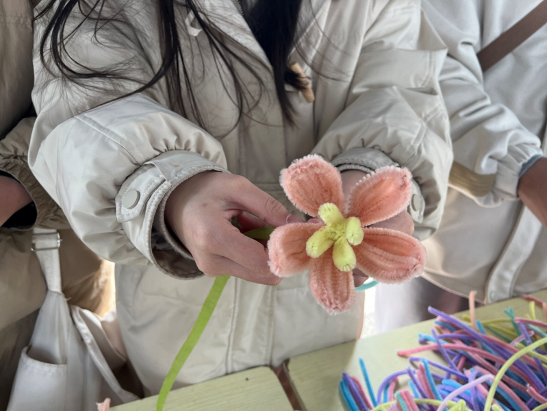 本次活动免费提供不同颜色的扭扭棒给同学们自由搭配,活动期间,同学们发挥着自己创造力编织了一朵朵属于自己的永恒之花。美丽的花朵映衬出女性们独特的魅力,吸引了大批学生前来创作。