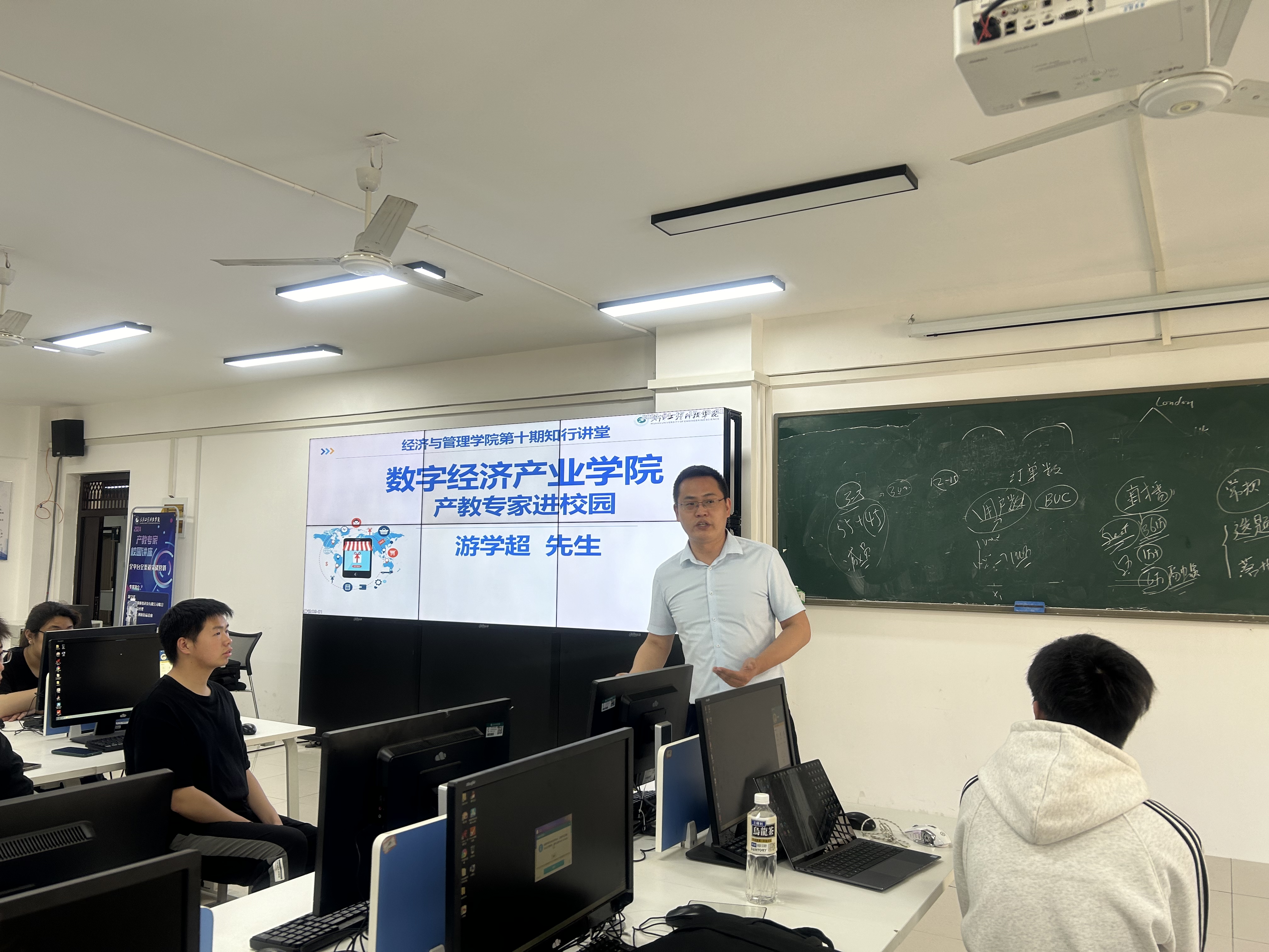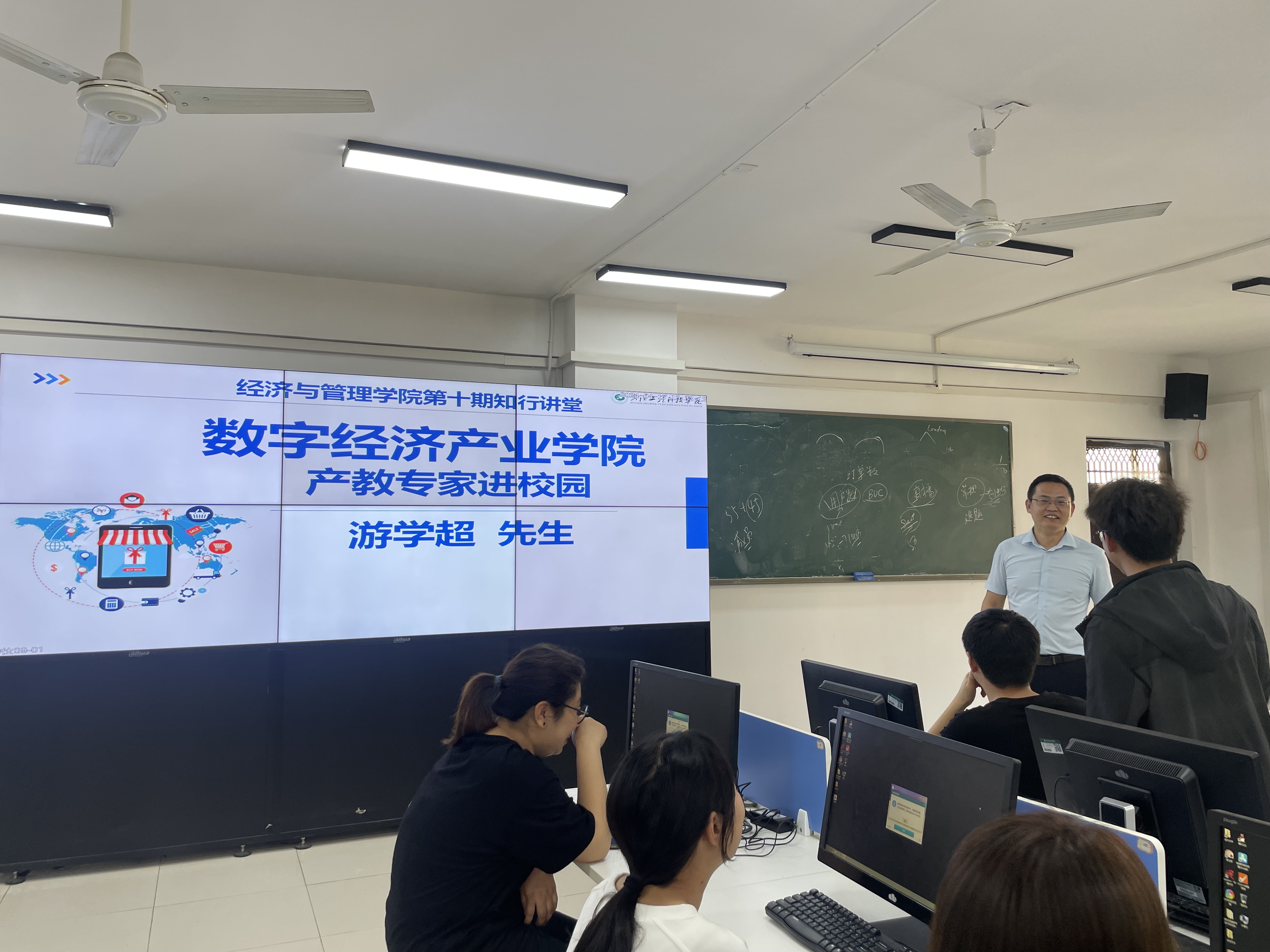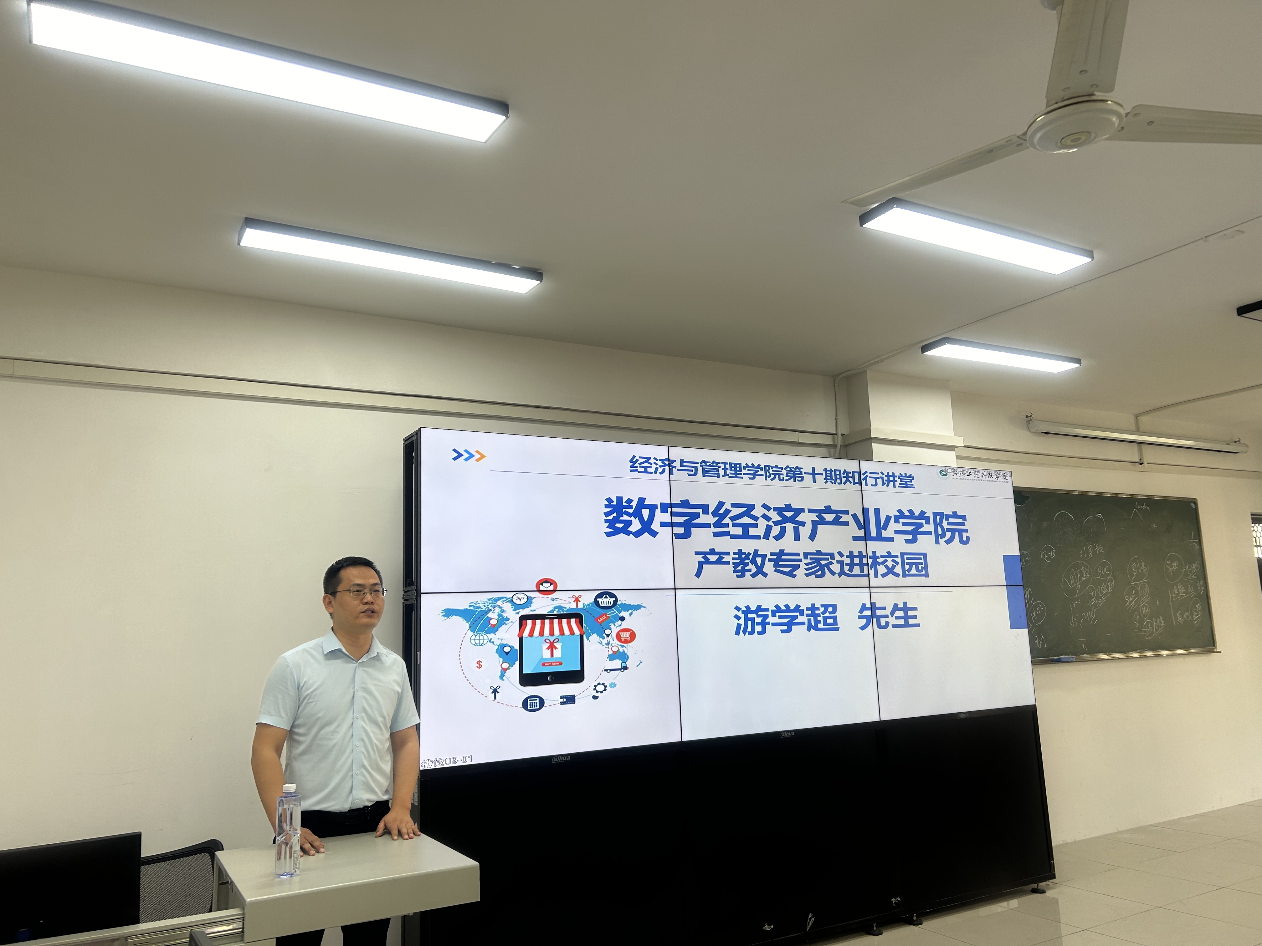 4月17日下午,数字经济产业学院产教专家进校园系列讲座暨经济与管理学院第十期知行讲堂在2教-316举行。武汉惠赠你网络科技有限公司联合创始人、总经理游学超先生为我校学子带来了全平台全渠道营销实战攻略。