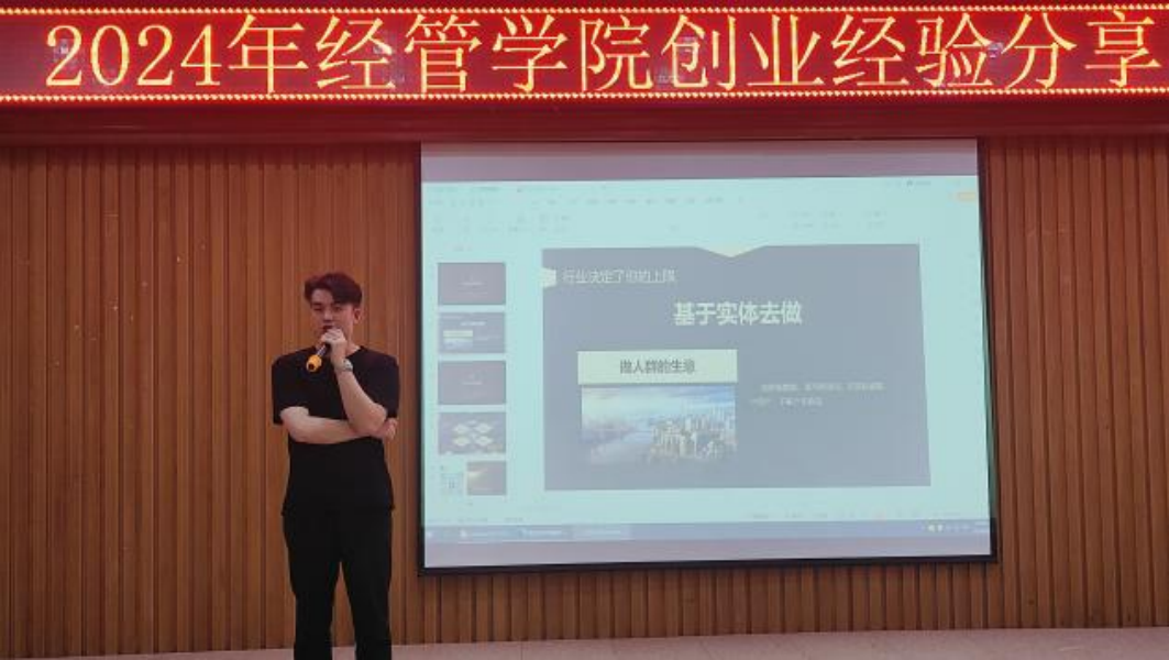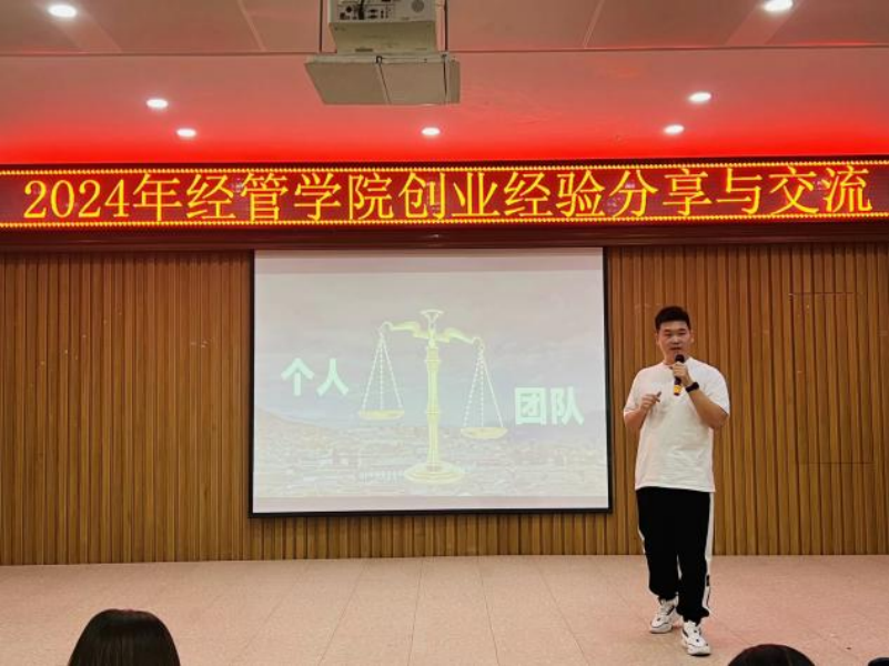 本网讯(通讯员:陶歆雅 黄南东 张腾远)为了给大家提供一个互相学习、共同成长的平台,共同探讨创业的智慧与经验,经济与管理学院于2024年4月24日下午2点在学生事务中心311开展经管学院创业经验分享与交流会。