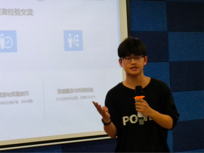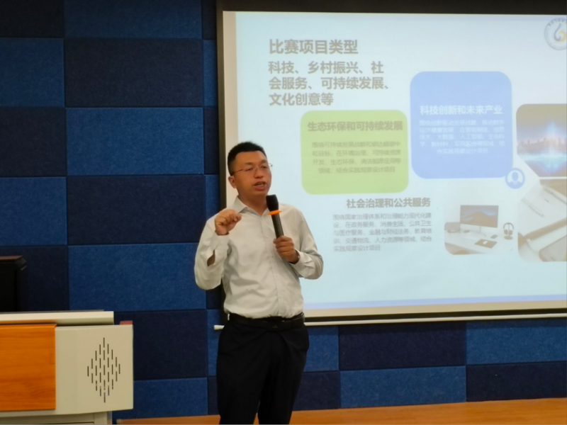 接着学生代表陈鑫发言,陈鑫同学通过自己个人的经历分享自己对赛事的理解,积极动员同学们参与赛事争优争先,分享自己的参赛经验,强调组队的重要性,告诉同学们确定项目后积极讨论不断完善项目计划书,在团队中要知人善用,持之以恒培育打磨作品,积极参加比赛。