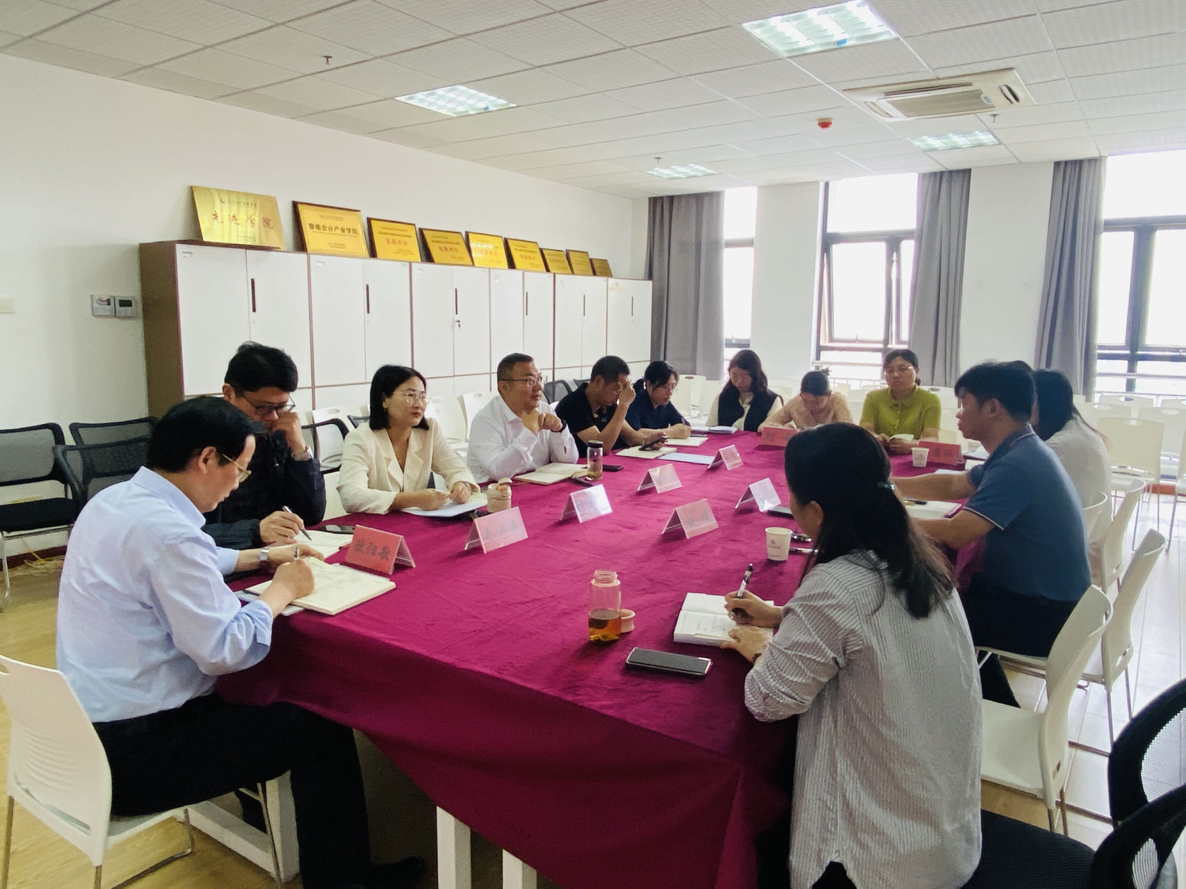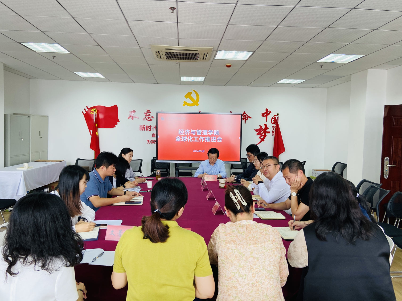 经济与管理学院领导班子、系主任、学工科长、实验中心主任及骨干教师参加了会议,并向校领导汇报了全球化工作的推进情况、存在的困难的下一步工作安排。