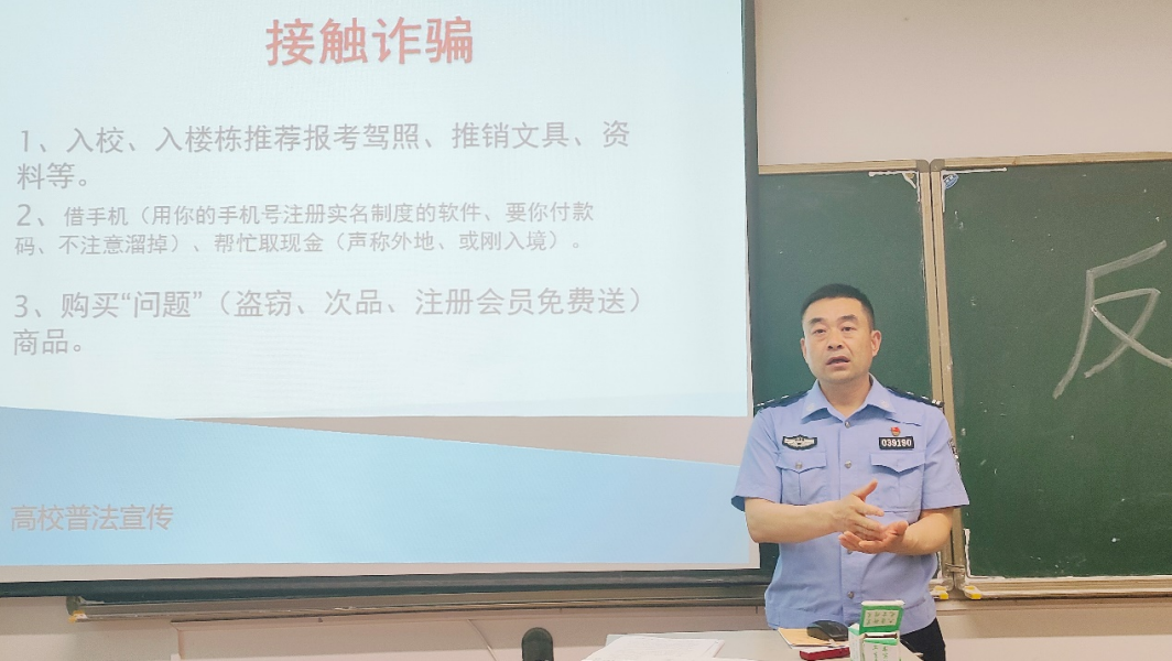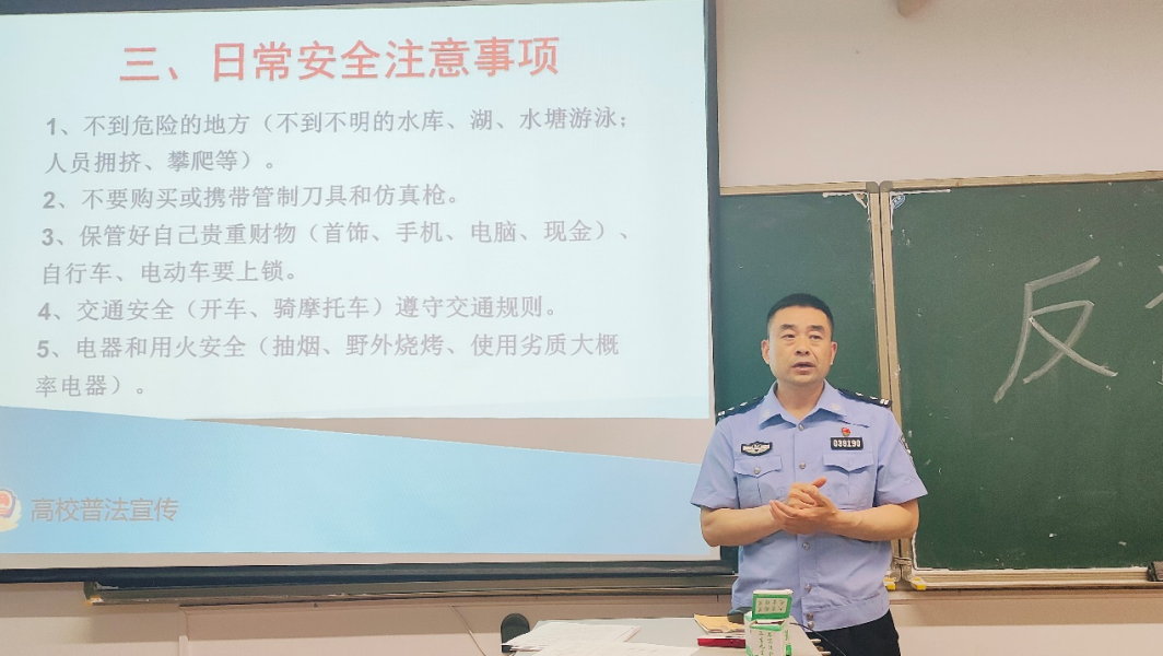 牛警官从涉及高校的诈骗类型以及如何预防、大学生可能存在的违法行为、日常安全注意事项这三个方面向学生们宣传电信诈骗以及安全性。牛警官认为新时代大学生应具备“格局高、三观正、有追求、有担当、在校学有所成、不虚度年华”等基本要素。