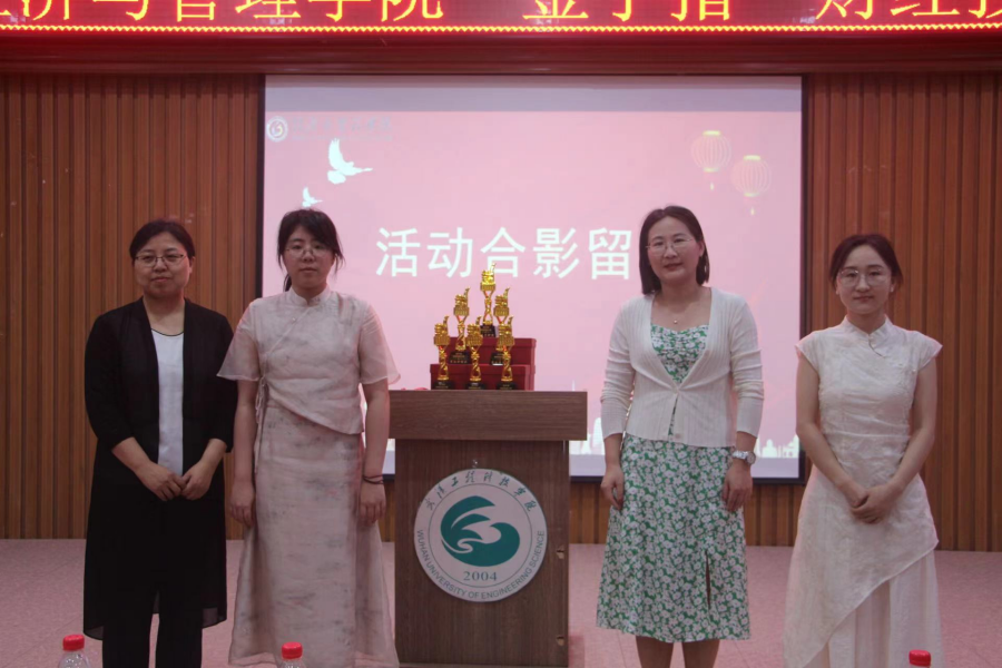 活动第五项,由经济与管理学院党总支书记胡差玲老师,经济与管理学院经济系系主任洪丽君老师,经济与管理学院实验中心主任肖琳琳老师,经济与管理学院江梦婷老师,上台共同启动本次经济与管理学院“金手指”财经技能大赛。