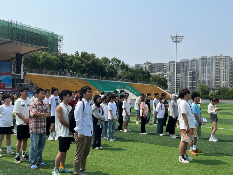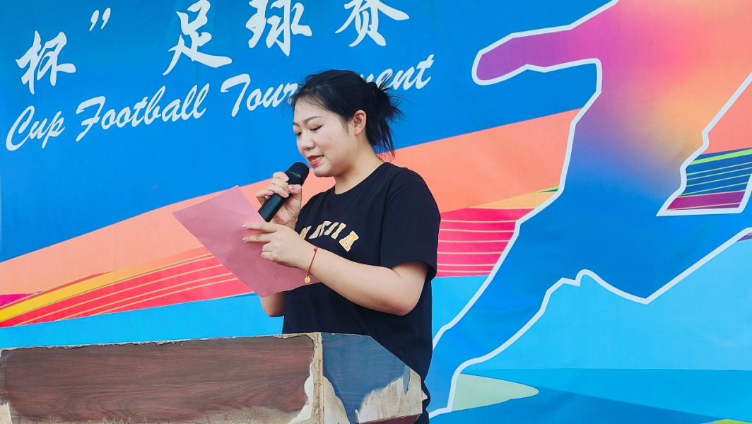 活动第五项,起跑热身,由甘小瑞同学在主席台前带领参赛人员进行热身,充分激活同学们身体里的运动细胞。