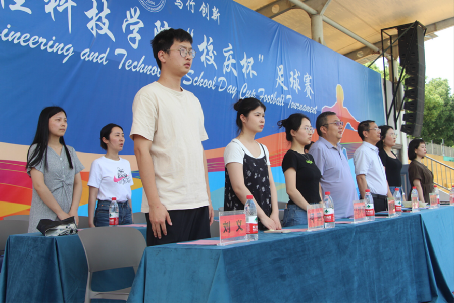 活动第一项,奏唱国歌,全体起立。参加活动的全体师生在国旗下庄严地歌唱国歌。