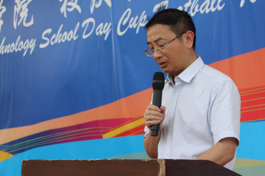 活动第二项,武汉工程科技学院党委副书记、校长助理唐军国老师上台致辞。唐书记提到:希望这个活动为同学们提供一个制造快乐、传递快乐的平台,展现大学生风采。阳光酷跑传递正能量,调动积极性,营造积极校园文化氛围。人生需朝着太阳奔跑,要有正确方向目标,如杜甫忧民、林则徐报国。太阳是目标,勇气信念是动力,乐观心态是向导。阳光正好,让我们一起奔跑,感受运动魅力!