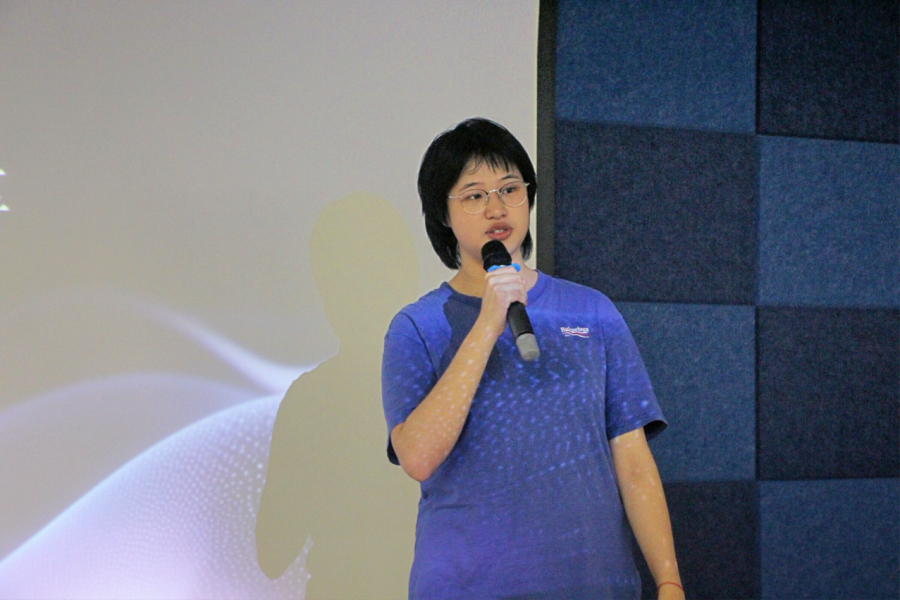 活动第一项,21级金融班的丁苡菲同学分享她在香港研学的经验。其中她主要从三个方面进行分享:专业选择方向介绍、研学经历简介、个人感悟。