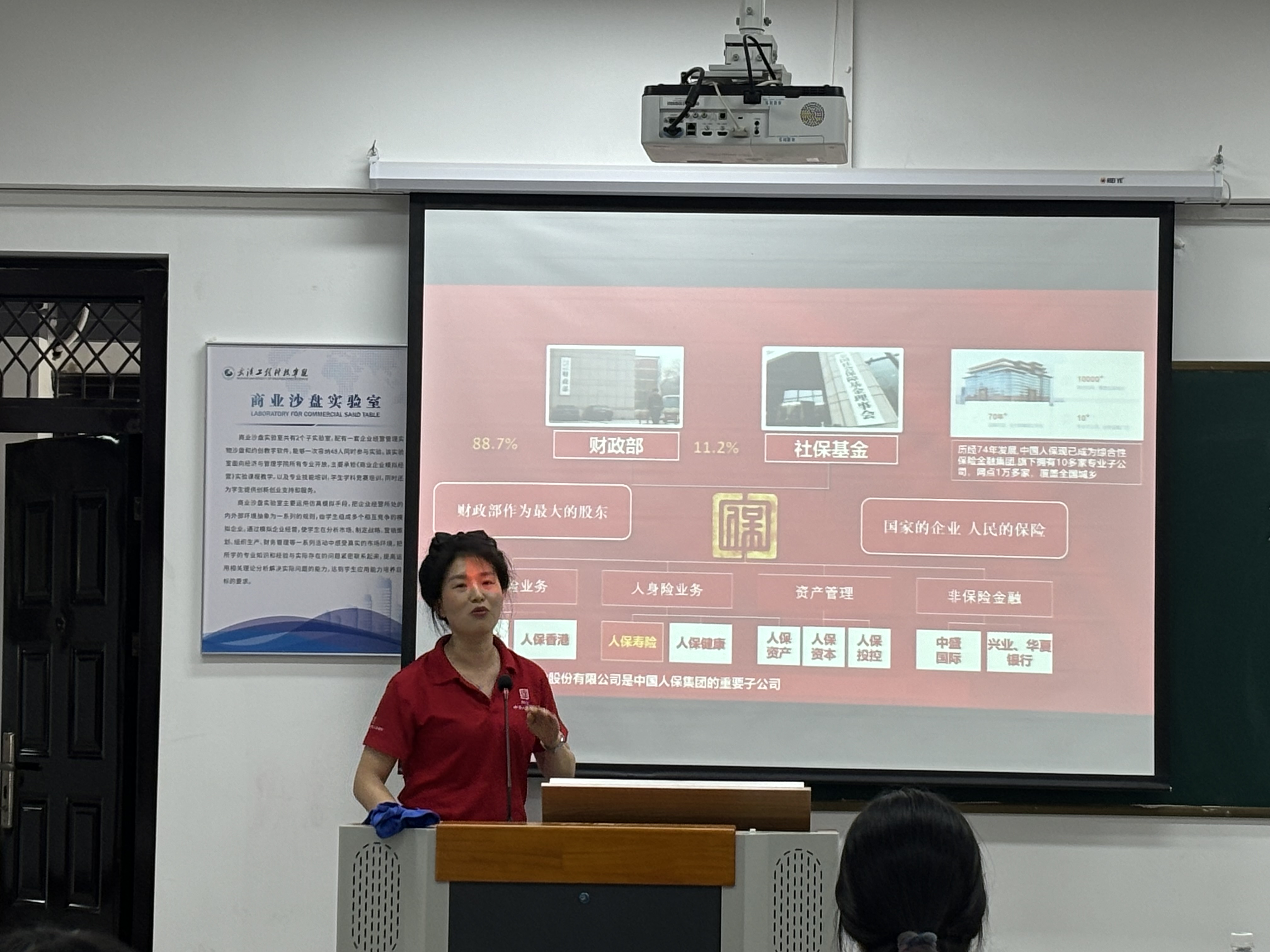 2024年5月24日中午,中国人民保险江夏支公司到经济与管理学院为经济系毕业生带来了一场专场宣讲会。经济系全体老师和毕业生参加本次会议。