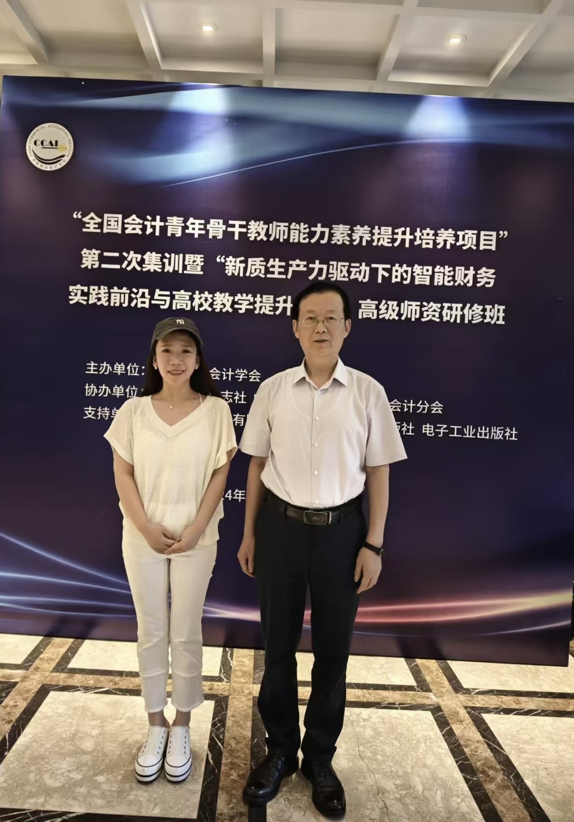2024年8月3日—7日,由中国商业会计学会举办的“新质生产力驱动下的智能财务实践前沿与高校教学提升策略”师资研修班在哈尔滨隆重开班,本期研修班旨在通过前沿理论与实践案例的高质量课程研讨和交流,帮助打开思维边界,拓宽理论与实践视野,进一步提升高校智能财务领域的研究能力和教学水平。我院财会系主任欧阳歆、青年教师夏梦瑗参加了本次研修,本次活动得到了智能会计产业学院的全程支持。