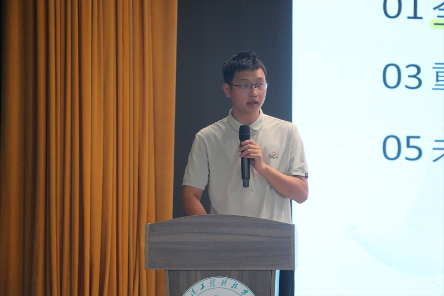 随后,学工科长何博文老师讲话。强调了自我管理与实践锻炼的重要性,鼓励同学们要在新时代中勇于担当,努力成为优秀建设者。