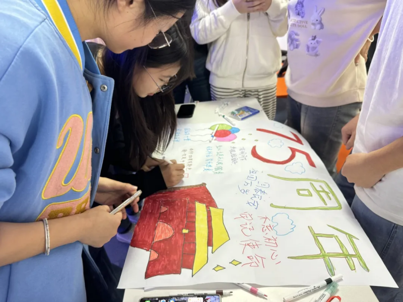 从前期热烈的方案讨论到细致入微的分工协调,将19名党校学员分为两组,以小组为单位共同完成两幅绘画作品。各组学员手持画笔,怀揣着对祖国七十五周年的祝福和对青春的热爱,共同投入到这场绘画盛宴中,为祖国母亲送上自己的祝福。
