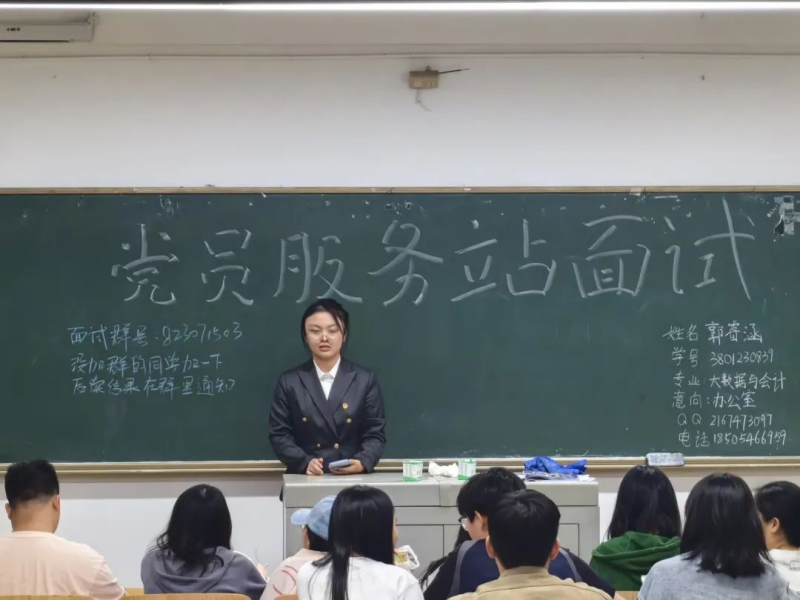 本网讯(通讯员:高晓燕)为贯彻落实党的二十大精神,进一步强化学院学生党员责任意识和先锋模范作用,充分发挥学生党员在青年学生思想政治教育工作及青年学生成才教育中的引领带动作用,营造积极进取、团结和谐的学风和校风,提高育人质量。10月11日,经济与管理学院党员服务中心面试于一教401、402顺利进行。
