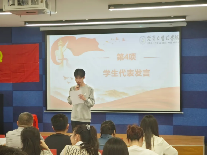 经济与管理学院院长胡晓峰,经济与管理学院党总支书记胡美玲,经济与管理学院团总支书记兼学工科科长何博文,各学生支部书记、组织委员、全体辅导员和入党积极分子培训班全体成员参加本次开班仪式。