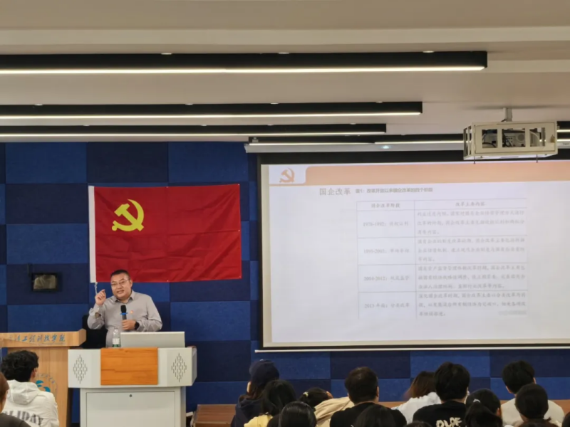 开班仪式结束后,经济与管理学院院长胡晓峰老师为本期入党积极分子培训班学员讲授第一堂党课——《改革开放史》。胡晓峰院长深入讲解改革开放的历史与意义,强调“落后就要挨打、发展才能自强”,通过对比改革开放前后的经济、科技、交通和工业发展,阐述改革的艰辛与开放的重要性。他重点讲授了改革开放带来的伟大成就,提升了国家实力和人民福祉,激励学员坚定深化改革、扩大开放的信念。