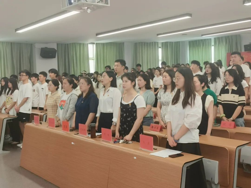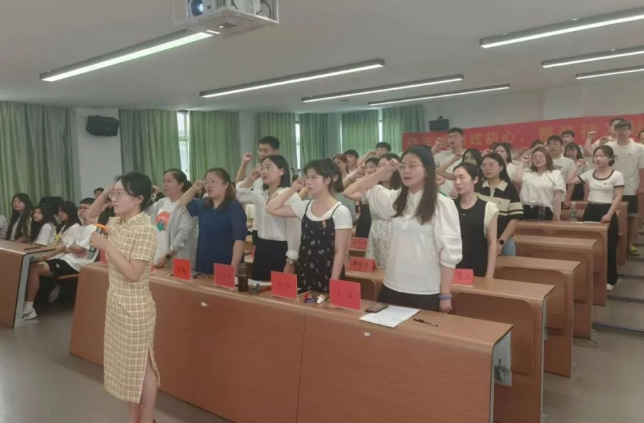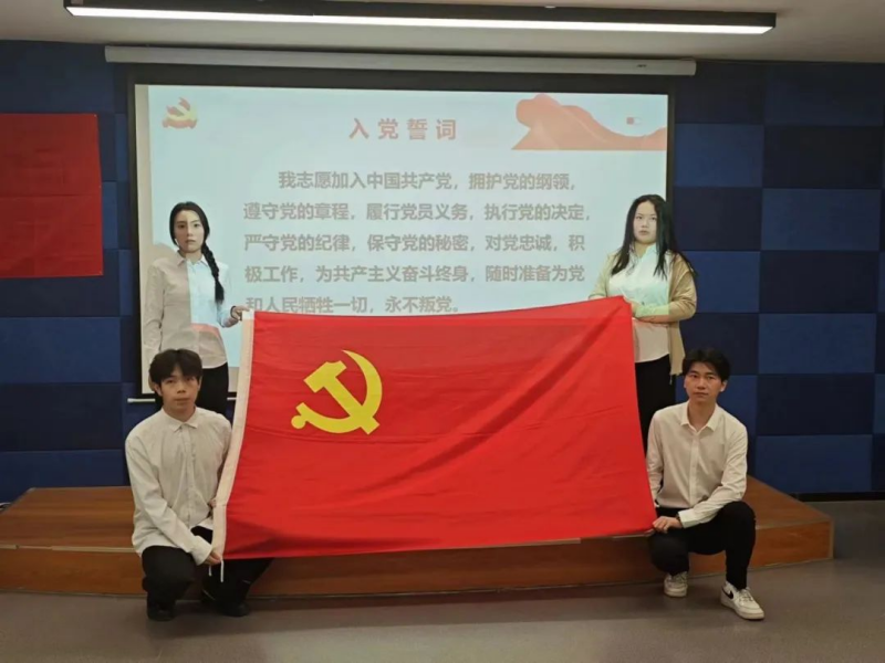 随后由学生第二党支部组织委员江梦婷带领全体师生党员重温入党誓词。在庄严的党旗下,大家共同重温入党誓词,回顾自己的入党初心和奋斗历程,坚定信仰,牢记使命。