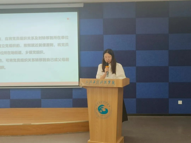 学生第三党支部书记程淑玲为毕业生党员们讲解组织关系转接工作流程和政策规定,并叮嘱每名毕业生党员应在规定时间内联系接收其党员组织关系的党组织,重视自己的转接工作。