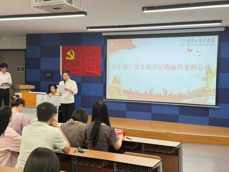 学生第三党支部书记程淑玲老师进行总结发言。她希望各位预备党员能够珍惜党员身份,不辜负党组织的期望,以更加饱满的热情投入到党的事业中去,为实现党的伟大事业和党的发展目标而努力奋斗。