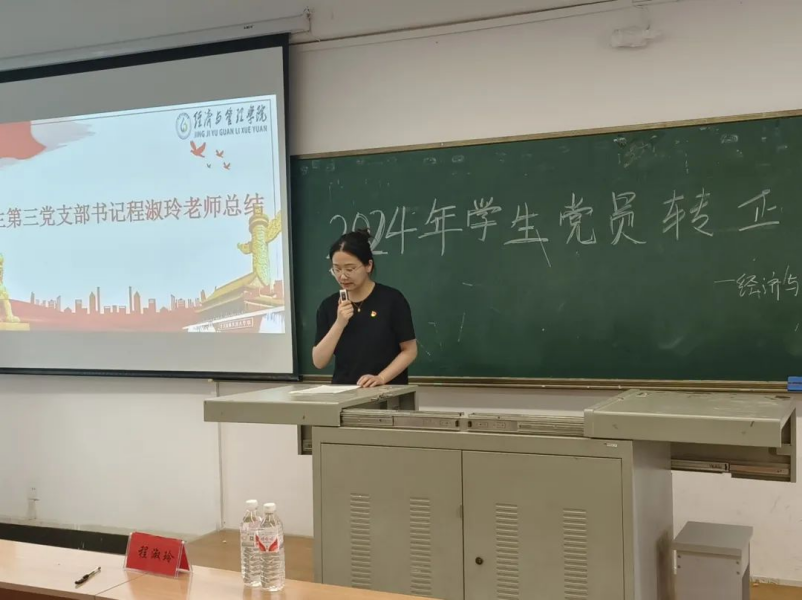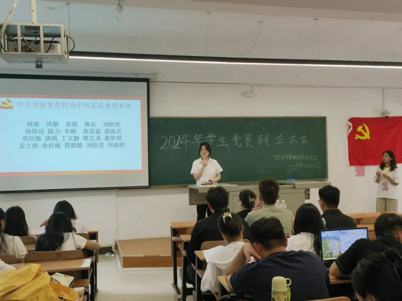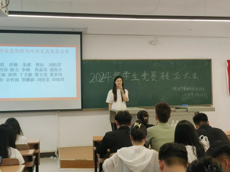 本网讯(通讯员:高晓燕史逸菲)为进一步贯彻习近平新时代中国特色社会主义思想,落实党中央关于全国高校党务建设与党员发展的相关要求,充分发挥党员的示范引领作用,2024年5月24日下午12:15,经济与管理学院于一教204教室举行学生党员转正大会。