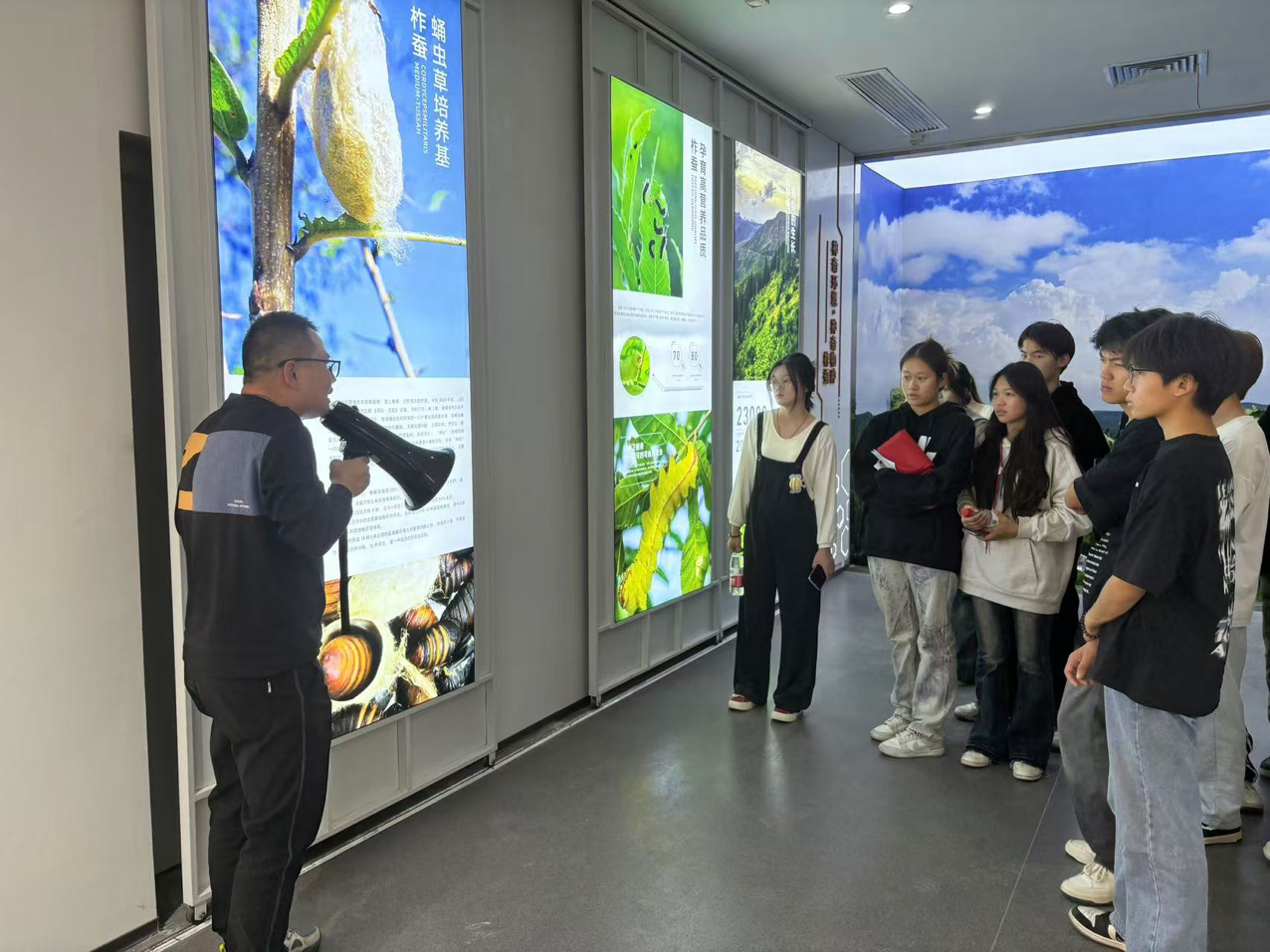 抵达园区后,在工作人员的引导下,学生们有序参观了各个场馆,重点了解了园区主要农产品的培育与加工。在蛹虫草展区,学生们观察了其生长环境,了解了蛹虫草的市场前景及深加工产品,如蛹虫草金汤和含片等。此次参观让学生们对现代农业的科技创新和附加值有了更深的认识。