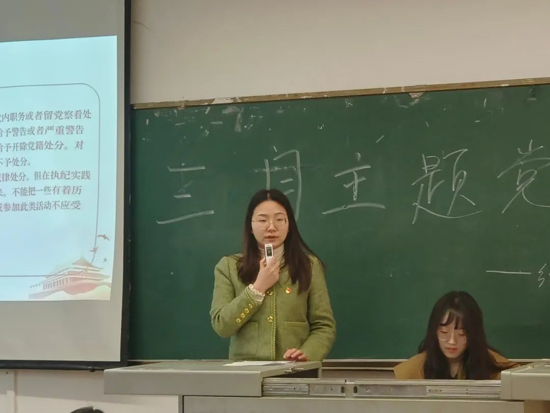 此次大会由第三党支部党务干事牛世勋同志主持,经济与管理学院学生第一党支部书记何琬,组织委员王彧,学生第二党支部书记陶歆雅,组织委员江梦婷,学生第三党支部书记程淑玲、组织委员王露及经济与管理学院全体在校生党员参加本次活动。