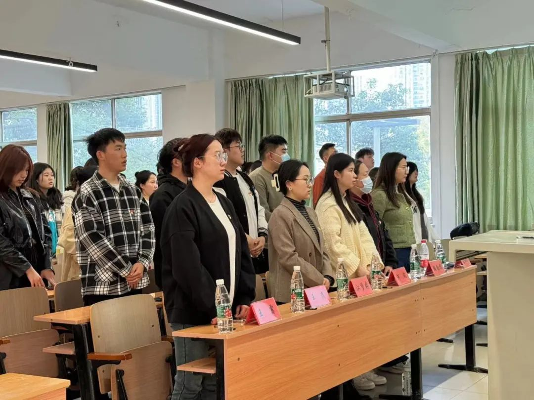 会议伊始,全体起立,奏唱国歌。学生第三党支部组织委员王露老师带领全体党员同志重温入党誓词,由各支部汇报党员到会情况及党费缴纳情况。