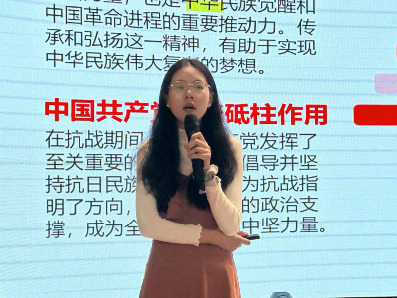 潘少丽老师围绕“勿忘国耻 吾辈自强”主题进行了深入讲解。通过强化民族认同感、增强国防科技精神、弘扬抗战精神、科技创新驱动发展、经济发展质量提升、文化软实力增强等方式实践吾辈自强路径。她指出,青年是国家的未来和民族的希望,广大团员青年要时刻保持高度的历史责任感和使命感,努力学习、锤炼品格,为实现中华民族伟大复兴贡献自己的力量。
