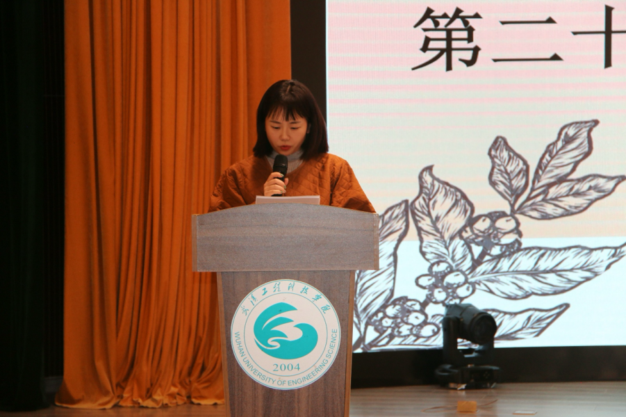 大会第三项,第二十届团总支学生会主席团代表杨婧怡同学上台发言,她表示回忆往昔,一系列丰富多彩的活动见证了我们的心血和汗水,也见证了团学工作的改革与进步,这些都成为我们成长道路上的历练与生命中一道亮丽的风景。最后她祝愿全体同学永怀赤诚与热爱,跋山涉水一往无前。