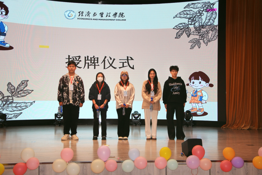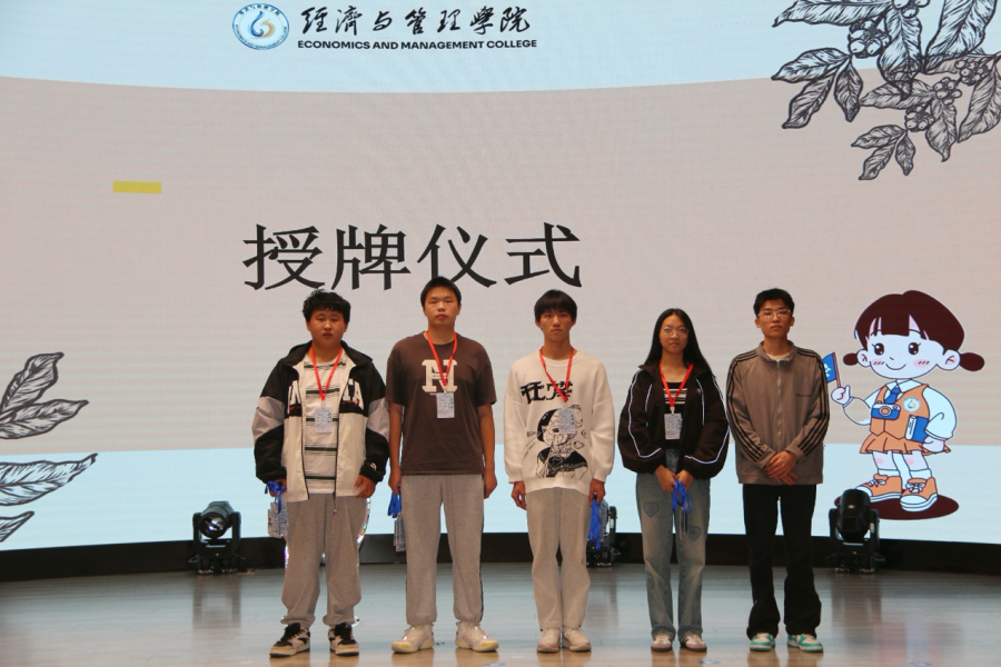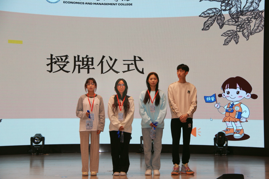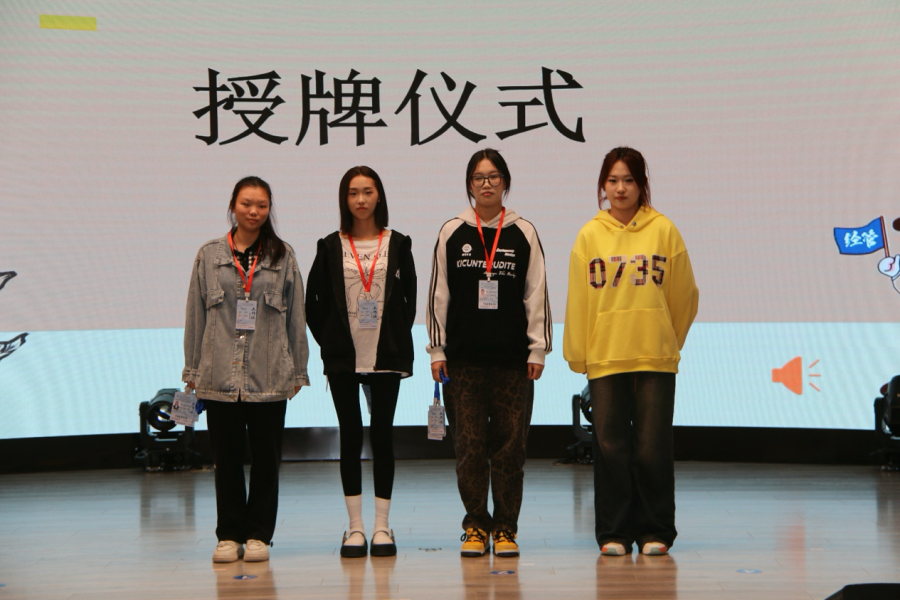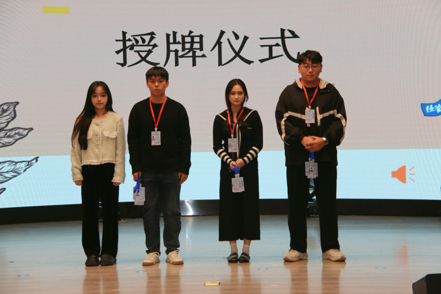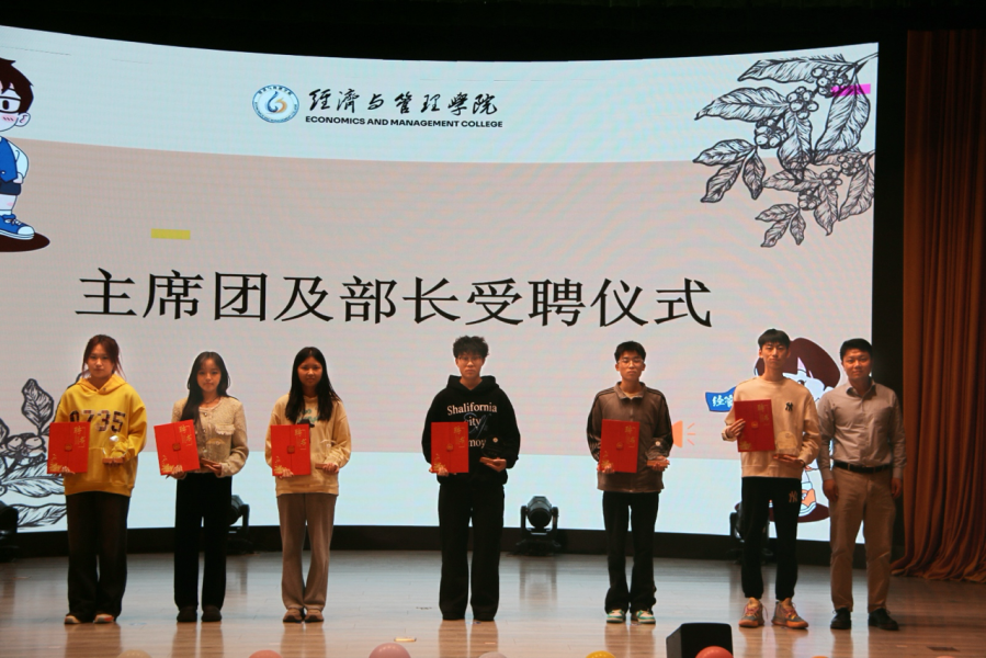 大会第五项,何博文老师为第二十一届主席团颁发聘书和奖杯,组织部、宣传部、青创部、办公室、学风纪律委员会、文体部、学生生活服务部与外联部分别由韩贝贝、陶歆雅、李伊婷、王彧、江梦婷、刘义、侯琴和胡光昊等老师授予聘书和奖杯。这是他们应得的荣誉,他们也将继续发扬这份荣誉。