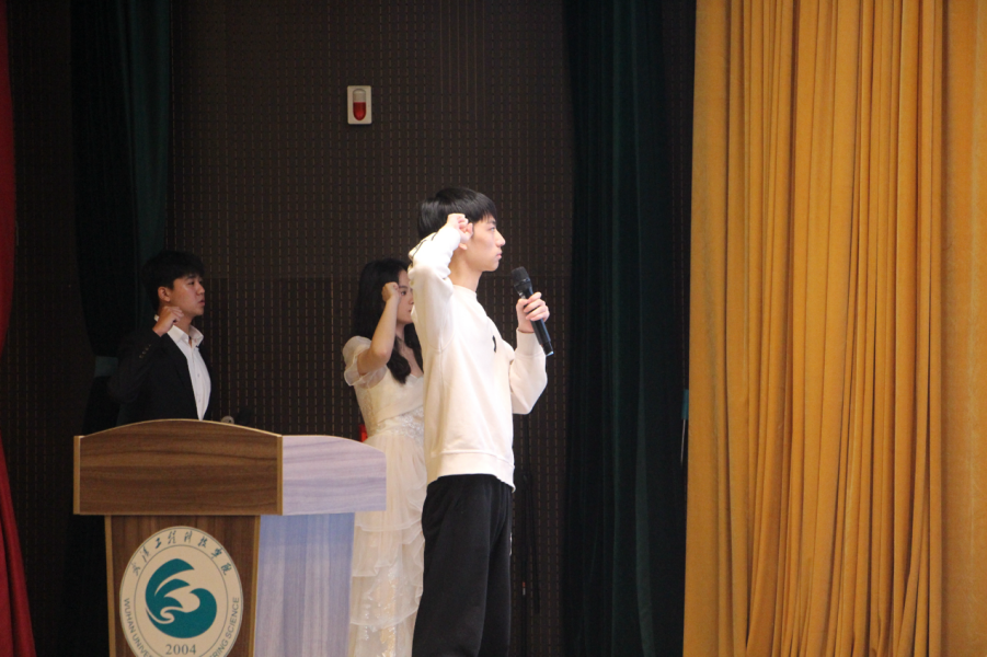 大会第八项,经济与管理学院第二十一届副书记艾泽安带领各部门干事宣誓,全体团学成员庄严宣誓,诠释了新一届团学成员自信自强的精神风貌。