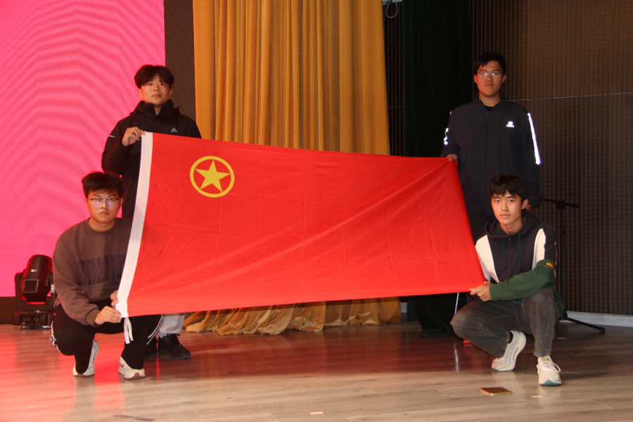 大会最后一项,全体同学再度起立,升团旗,奏唱团歌。