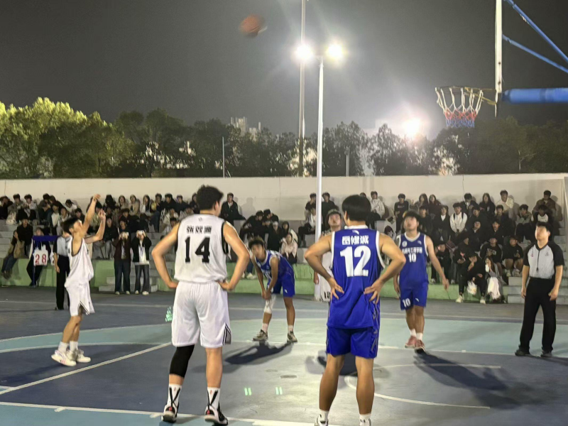 本次篮球赛自开赛以来,吸引了众多篮球爱好者的关注。决赛之夜,篮球场内座无虚席,气氛热烈。双方队员在场上奋力拼搏,每一次精彩的过人、精准的投篮、默契的配合都引来场边观众的阵阵喝彩。