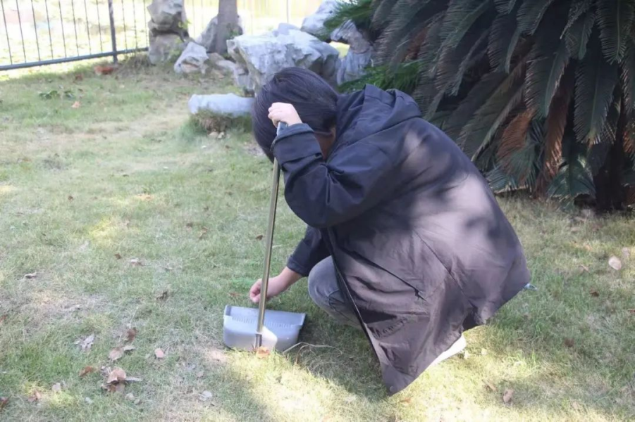 随着时间的推移,校园内的景色在志愿者们的努力下悄然变化。原本散落于小径旁、花坛中的垃圾被一一拾起,归类投放至附近的垃圾桶内,连那些平时不易察觉的隐蔽角落也被细心地清扫干净。活动进入尾声时,志愿者们并没有急于休息,而是再次聚集在一起,对清扫过的区域进行最后的检查,确保没有遗漏之处。他们相互协作,将沉重的清洁工具整齐归位,用实际行动诠释了“奉献、友爱、互助、进步”的志愿精神。