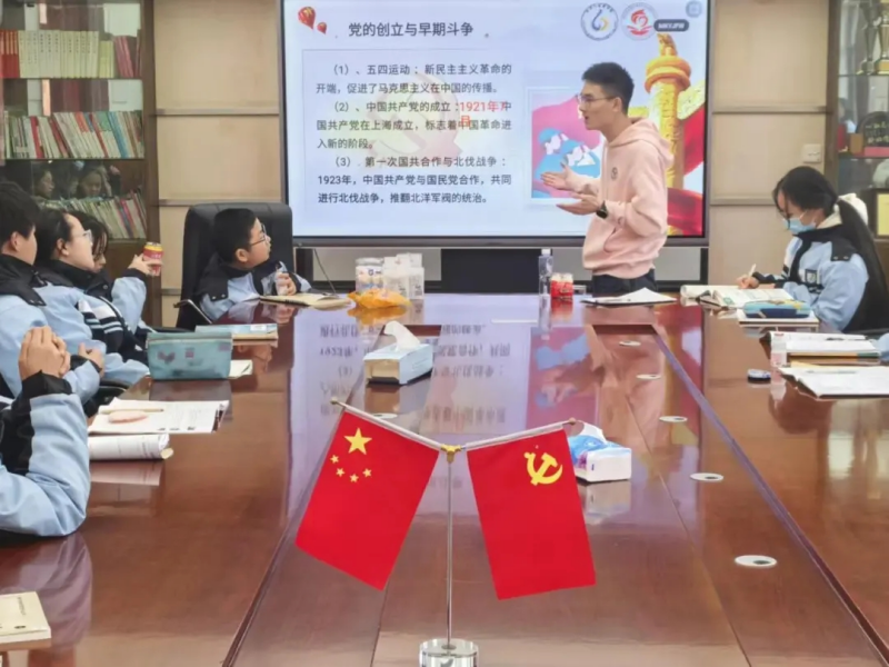 然后杨书闵同志分别从“党的创立与早期斗争;土地革命与抗日战争;解放战争与新中国的成立;社会主义建设与改革开放;党的宝贵精神与宝贵经验”五个方面带领同学们进行了党史的学习,通过对这些历史节点的讲述,使同学们更好的了解伟大的中国共产党是如何一步步带领中国人民进行解放斗争和社会主义建设,同时让学生感受革命先辈的奋斗精神和牺牲精神,更好的传承红色基因。