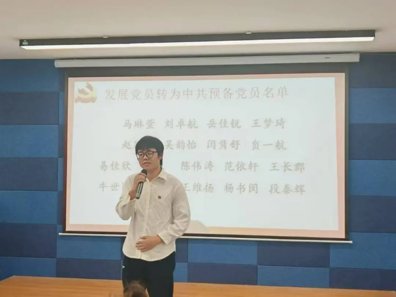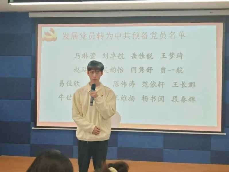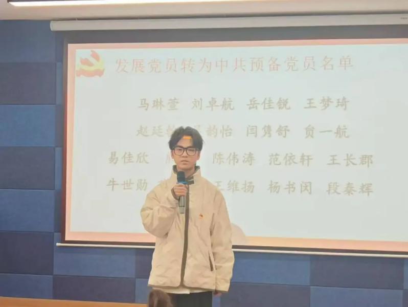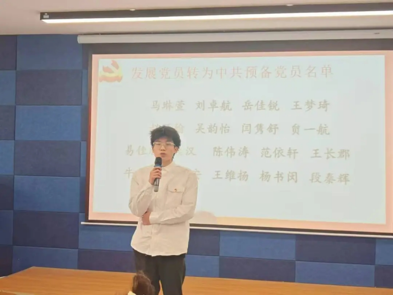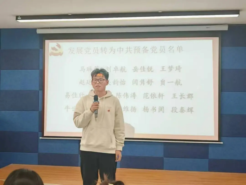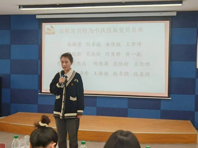 首先是发展对象进行发言,发展18位中共预备党员,按照马琳萱、刘卓航、岳佳锐、王梦琦、赵廷翰、吴韵怡、闫隽舒、贠一航、易佳欣、熊汉、陈伟涛、范依轩、王长郡、牛世勋、艾泽安、王维扬、杨书闵、段秦辉的顺序依次上台进行个人小结。他们从思想、学习、工作、生活等方面简单介绍了自己在入党积极分子期间的现实表现,诚挚地表达出自己对党组织的向往。对应的培养联系人及群众代表也对各位发展对象进行了分析评价发表意见。