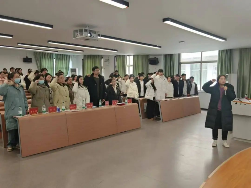 韩贝贝老师带领大家宣誓入党誓词,希望党员同志能够牢记入党宣誓的誓言,始终坚守信仰和初心,不断锤炼党性,以实际行动践行共产党员的崇高使命。