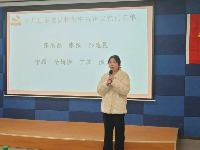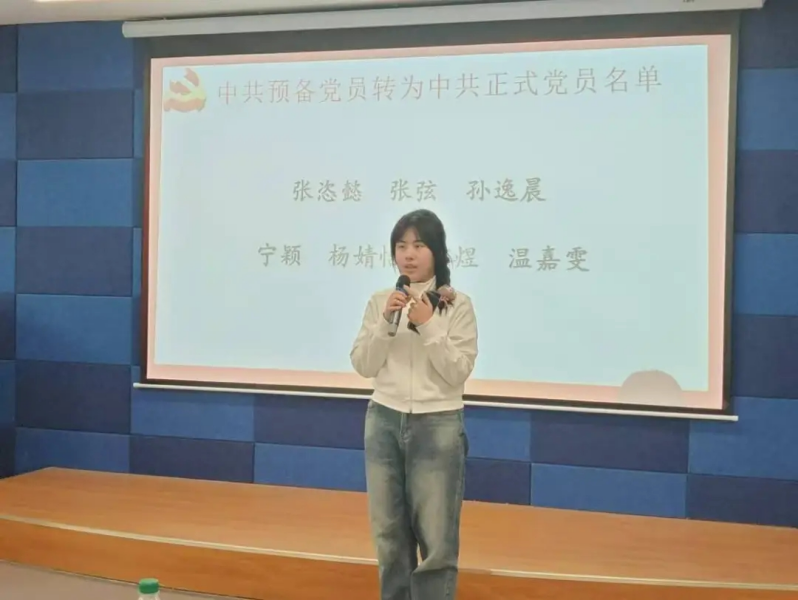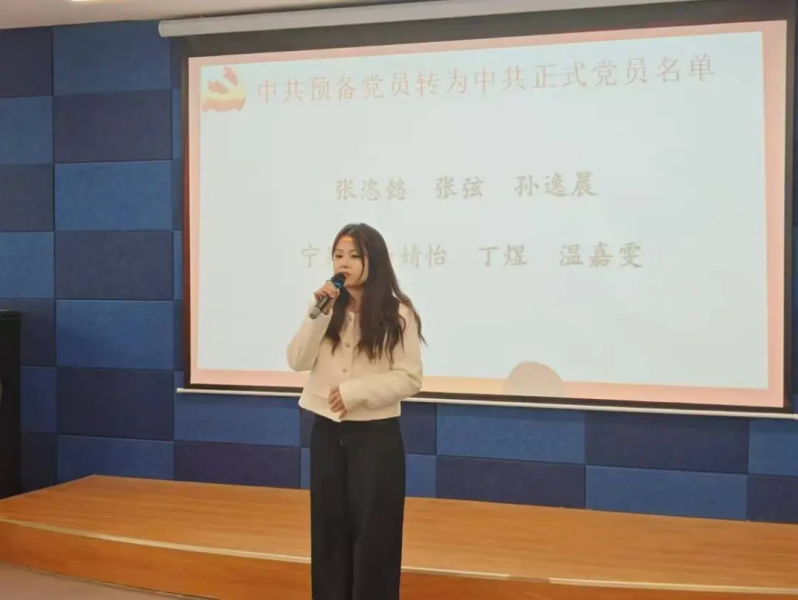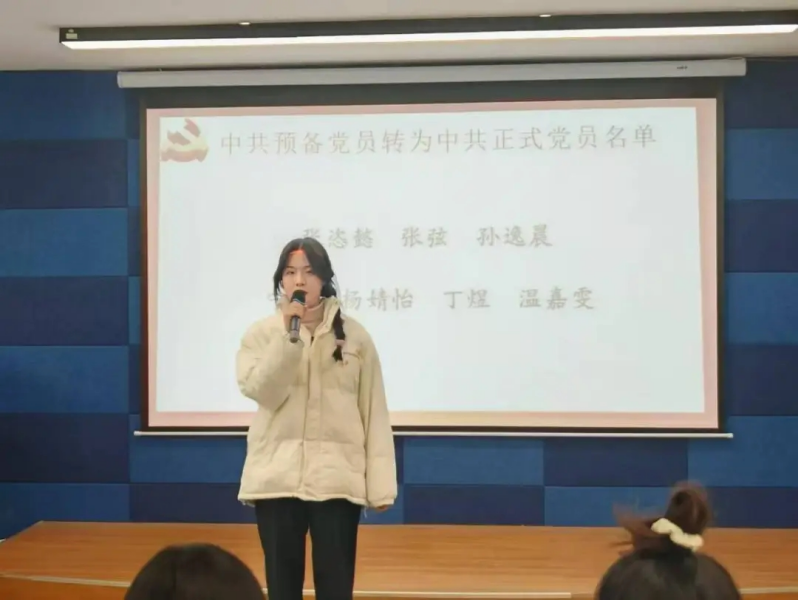 最后是7名中共预备党员转为中共正式党员,按照张恣懿、张弦、孙逸晨、宁颖、杨婧怡、丁煜、温嘉雯的顺序上台进行个人小结,汇报自己一年来的思想、学习、工作及生活情况。他们回顾了自己在党的培养下所取得的成长和进步,并表达了对未来成为一名合格党员的决心和信心。