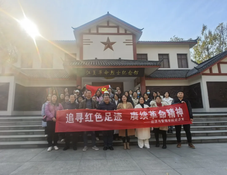 为贯彻党的二十大精神,聚焦党组织政治功能和组织功能,持续提升学院凝聚力,2024年12月19日下午1:30,经济与管理学院开展了“追寻红色足迹,赓续革命精神”为主题的党日活动,组织教职工党员参观江夏烈士革命纪念馆。皆在进一步发挥党员教师的先锋模范作用,增强党员教师的历史使命感和责任感,以更加饱满的热情和更加扎实的作风投入到工作中去。