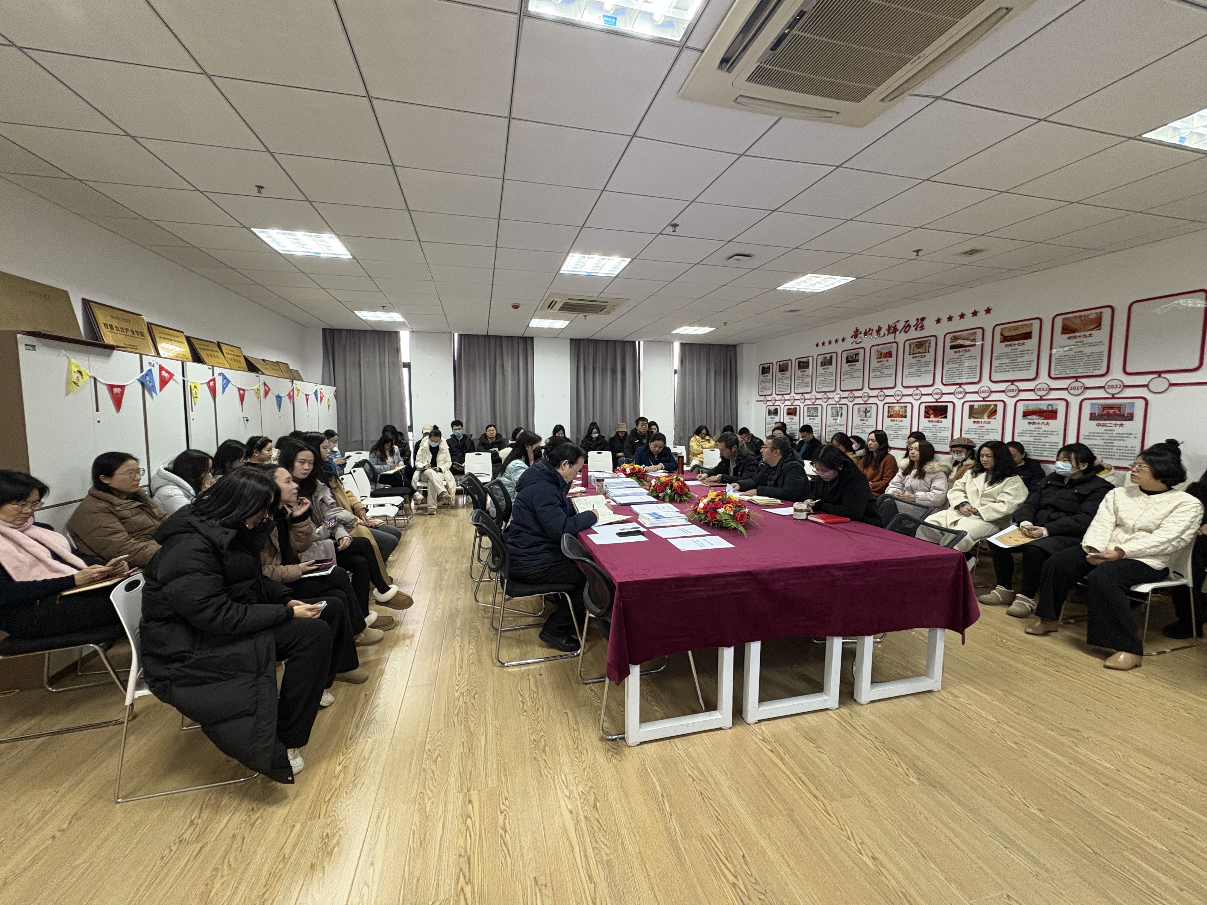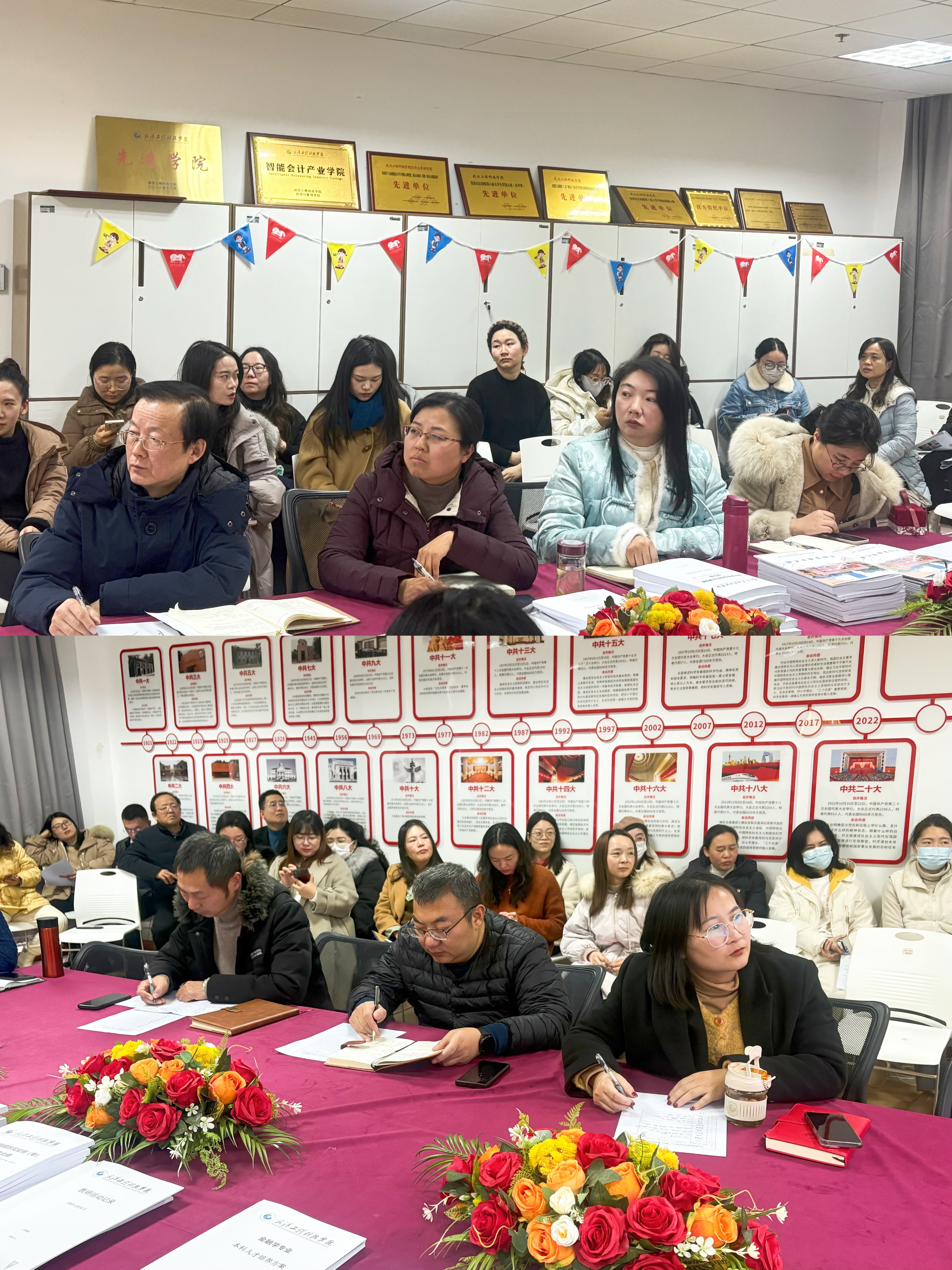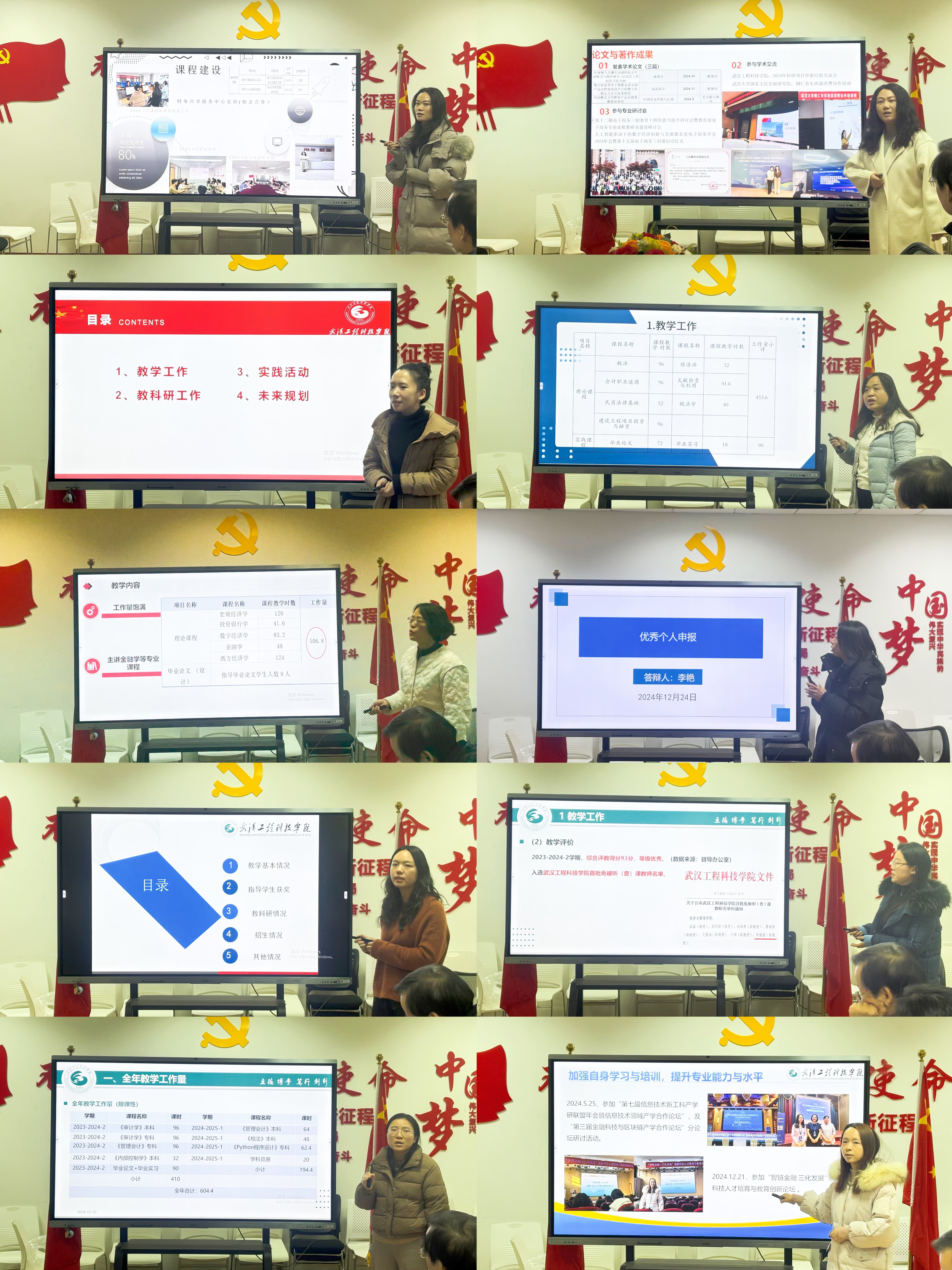 2024年12月25日13:30,经济与管理学院在综合楼807会议室召开了2024年度教师优秀个人答辩评审会。共10名教师参与答辩,答辩评委由学院党政领导、各系主任和实验中心主任担任。全体专职教师到场观摩。胡晓峰院长主持会议。