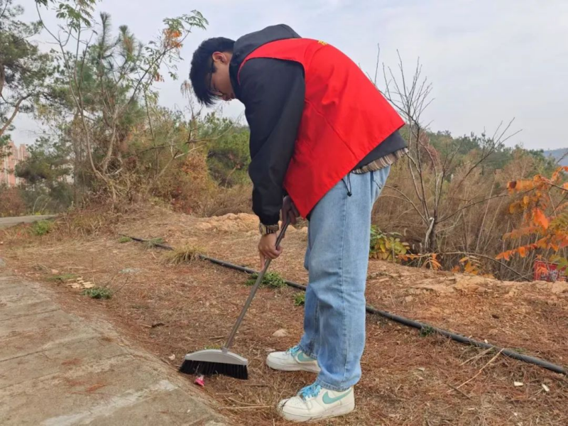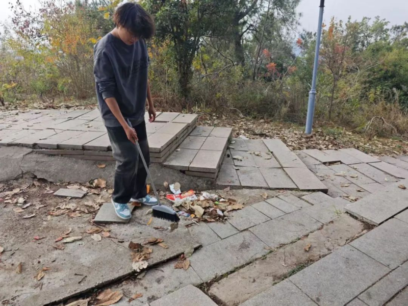 阳光透过树叶的缝隙,洒在这些热心的青年身上,为他们的辛勤付出镀上了一层金色的光辉。汗水顺着他们的脸颊滑落,却丝毫没有减缓他们手中的动作,反而像是激励,让每一个人都更加坚定了要将花山打扫得一尘不染的决心。