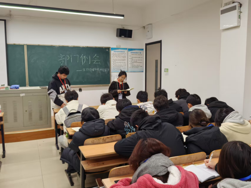 为落实好学院近期各项工作,加强各部门之间的联系,经济管理学院于2024年12月9日17:20在综合楼707室召开第十五周团学干部例会,本次会议由学工科科长兼团总支书记何博文主持。