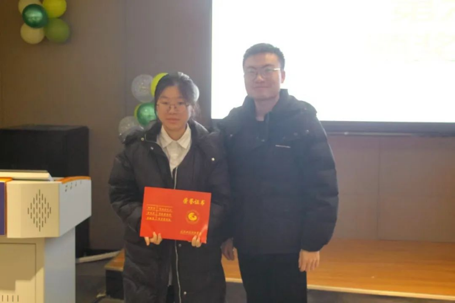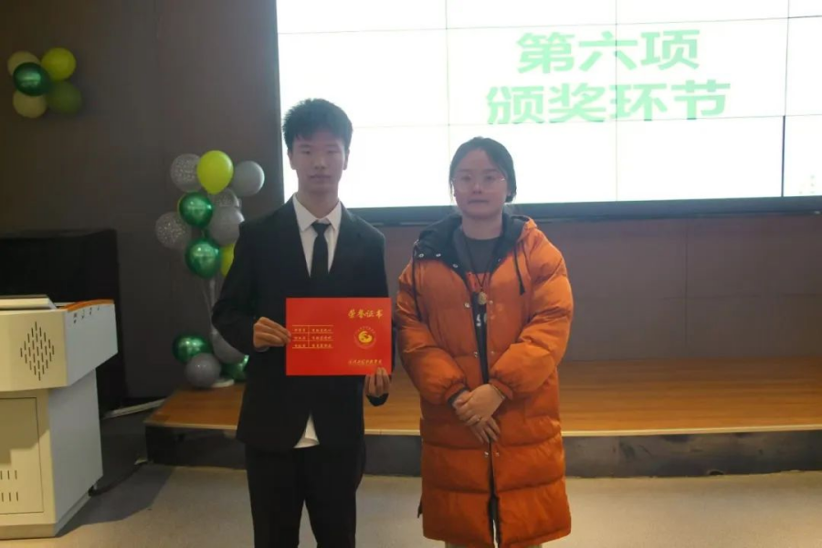 胡光昊老师为周雅欣同学颁发最佳配音奖。