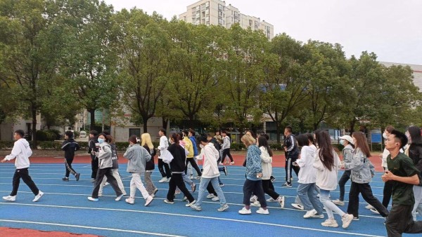 学生们分班级按照方队在操场等候,随着跑操口令的响起,各班在班级领跑的带领下,迈着整齐而又坚定的步伐,精神抖擞地围着操场跑步。