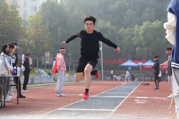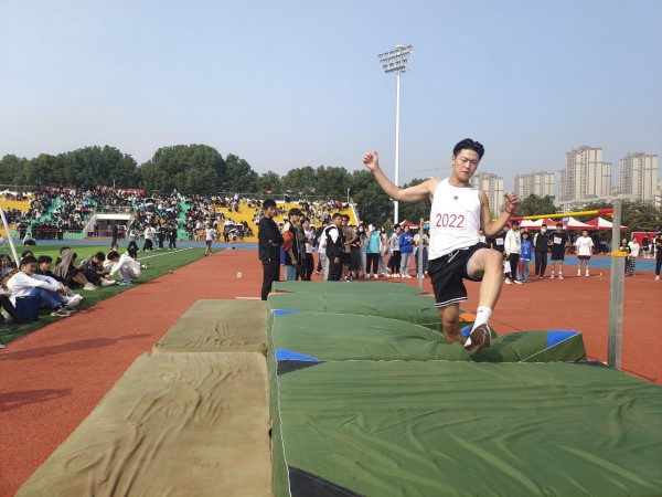 离弦箭似的助跑,蚂蚱似的起跳,空中的走步表演,引起我们阵阵惊叹的,不是别人,就是他——郭志鹏!他的每一步腾跃,积攒的不只是力量,还有激情;每一步腾跃,进发的不只是速度,还有斗志;每一步腾跃,挥扬的不只是汗水,还有青春!三级跳赛场上的每一小步,都是向最后梦想迈进的一大步!郭志鹏跨步一跳,划出弧线,奔向阳光,最后在男子跳远与男子三级跳上都获得了第二名的好成绩!