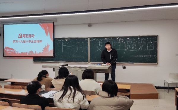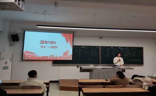 为学习贯彻党的十九届六中全会精神,全面践行学校“一训四风”的要求。2021年11月22日下午五点二十分,经济与管理学院党总支十一月主题党日在一教304教室进行。