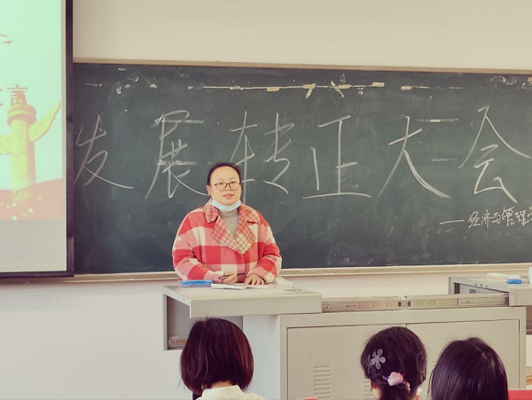 根据《中国共产党章程》和《中国共产党发展党员工作细则》,以习近平新时代中国特色社会主义理论为指导,经济与管理学院党总支学生联合党支部党员发展转正大会在于2021年12月3日早8点,在一教503教室顺利举行。会议主要讨论了经济与管理学院党总支内接收发展对象为预备党员和预备党员预备期满按期转正的问题。