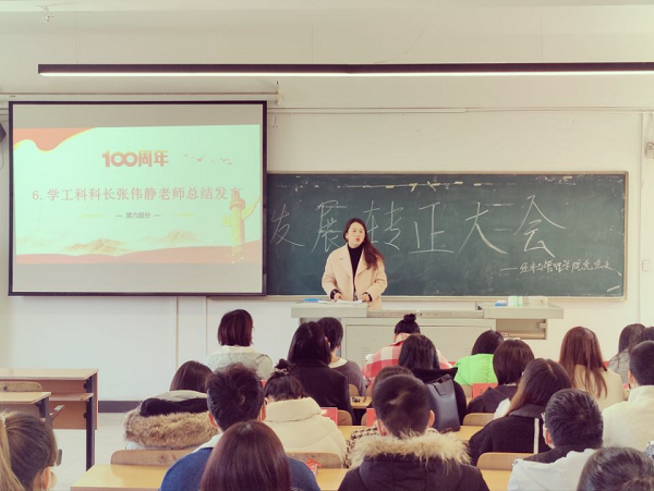 最后,由学工科科长张伟静老师对会议作了总结,对预备党员提出几点要求:一、要做到言行合一,既然加入中国共产党,就要做到自己说出的承诺;二、各位党员同志要遵循学校的规章制度,不要肆意妄为;三、党员同志要做好先锋模范带头作用,面对身边的不良现象,要及时制止。也希望大家能够在未来的生活中积极学习、努力提升自己,最终实现在大学中自我成长,在党支部生活中实现自我提升。