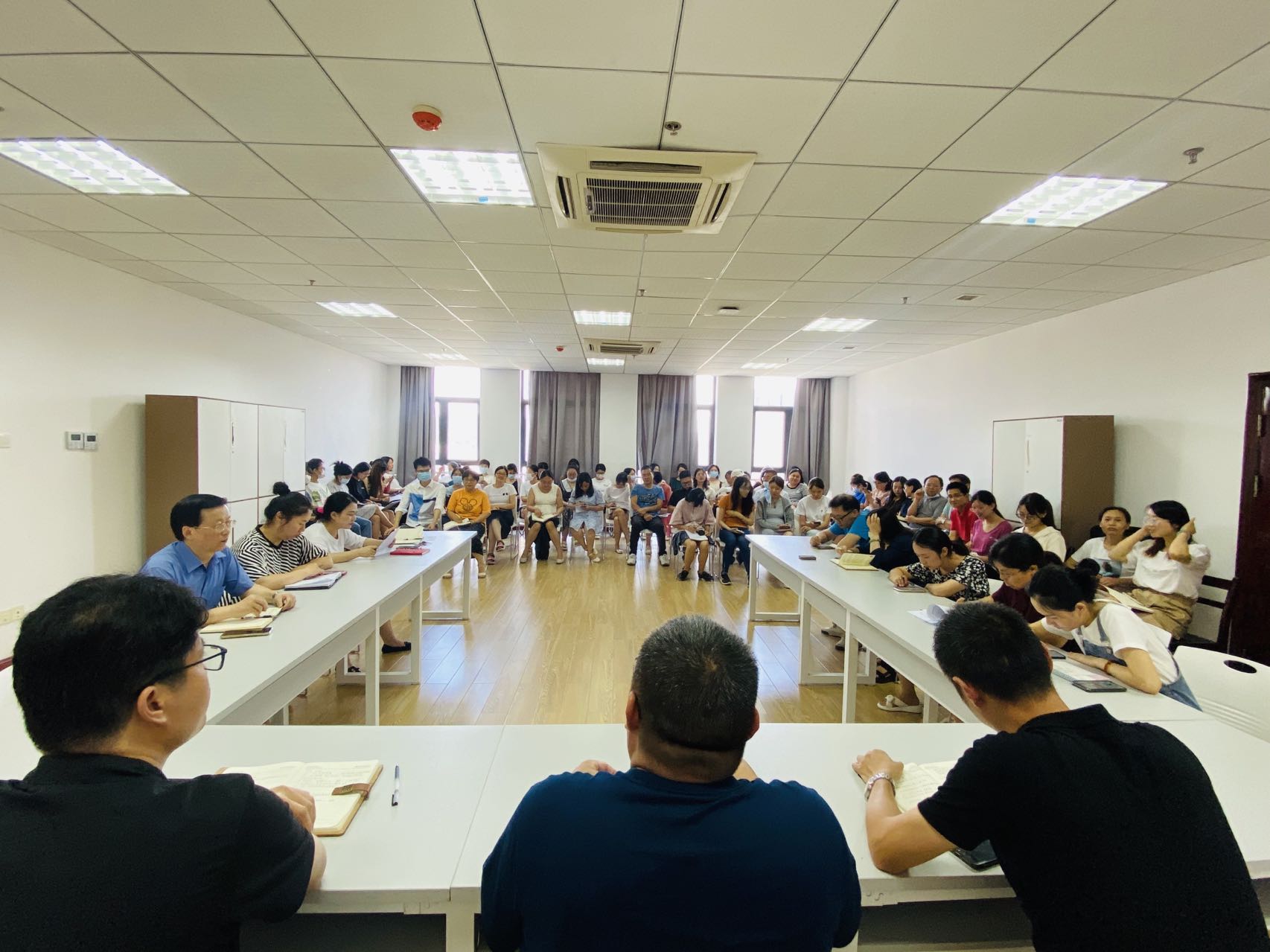 接着,涂淼副院长教学工作进行了布置。第一,根据教师职称和课程性质,对下学期排课工作及教师分配作了相关安排;第二,对教学资料的归档和上架作了相关要求,并强调了几个细节问题;第三,涂淼副院长强调,由于教师们9月份会重点进行磨课工作,所以务必在暑假期间高质量完成教案撰写和讲稿的撰写,同时,以专业为单位组织对讲稿的互查,落实到人。