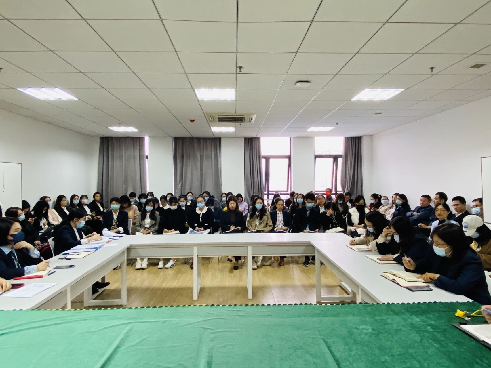 涂淼副院长就教学工作做了五点安排。第一,各教师按照相应的时间节点和要求完成关于教研活动开展、“磨课”情况整改、课程建设中期检查及结题、项目申报等工作;第二,通知了教师遇到疫情封控情况的教学应对流程;第三,对雨课堂平台授课做好系统点名工作做了要求;第四,安排了本周四在一号教学楼进行的2020-2021资料整改工作;第五,要求各系围绕教风和学风建设开展相关的主题教研活动。